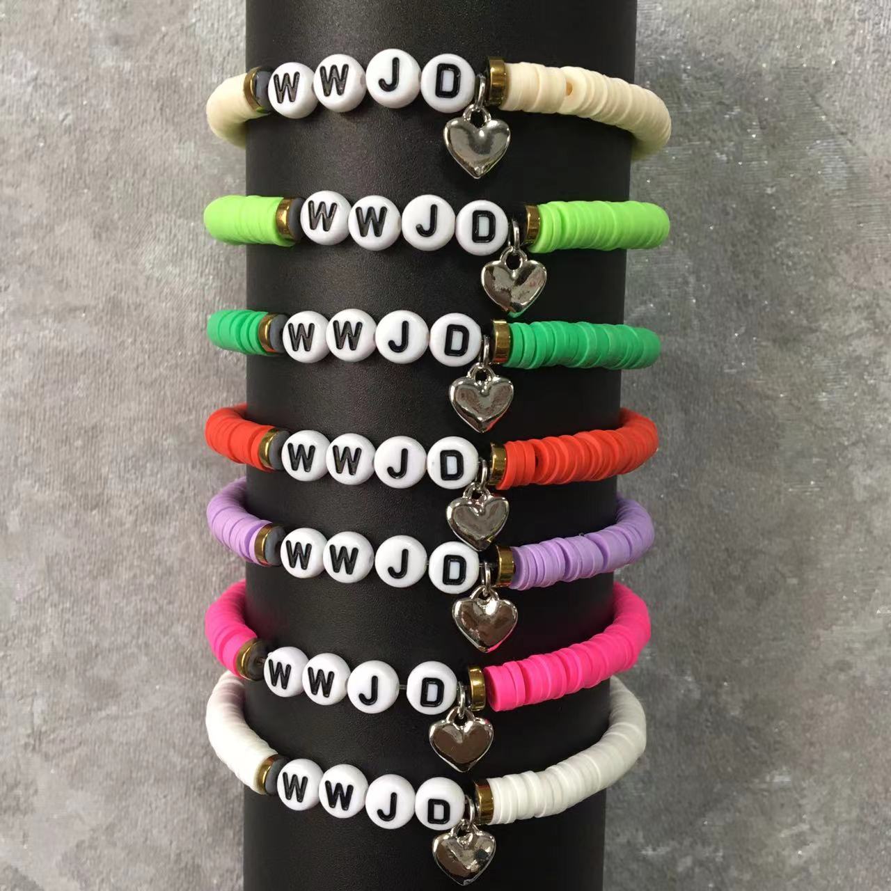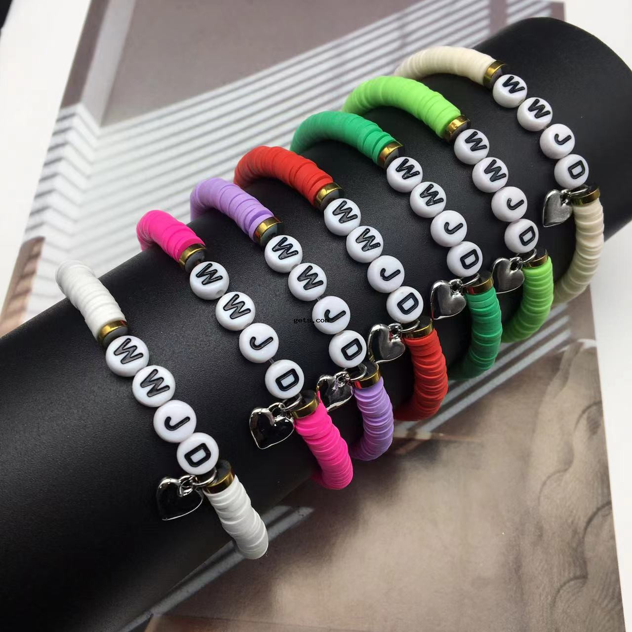 argile de polymère bracelet, avec alliage de zinc & Acrylique, Lettre d’alphabet, fait à la main, Style bohème & pour femme, plus de couleurs à choisir, Longueur:Environ 6-7 pouce, Vendu par PC