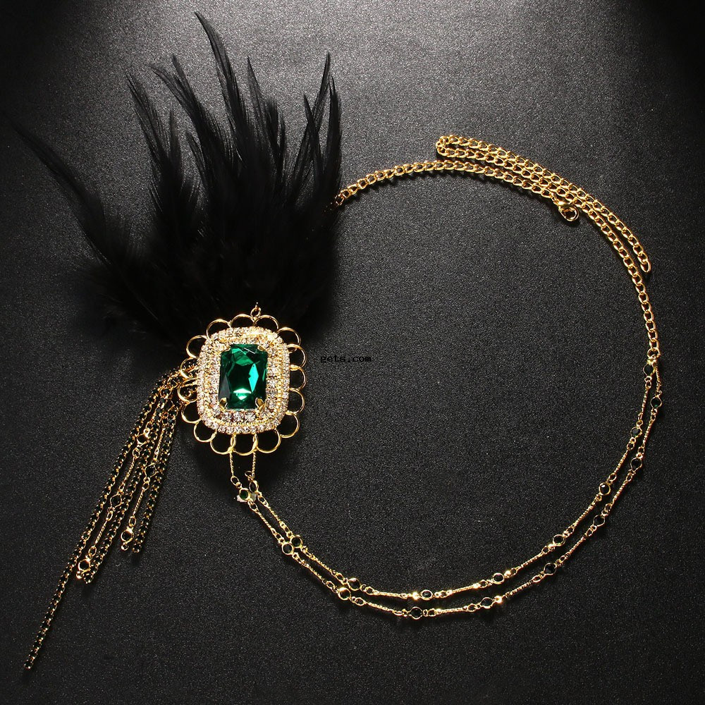 bandeau, fer, avec tissu & cristal & perle de plastique, pour femme, vert clair, 37cm length, Vendu par PC