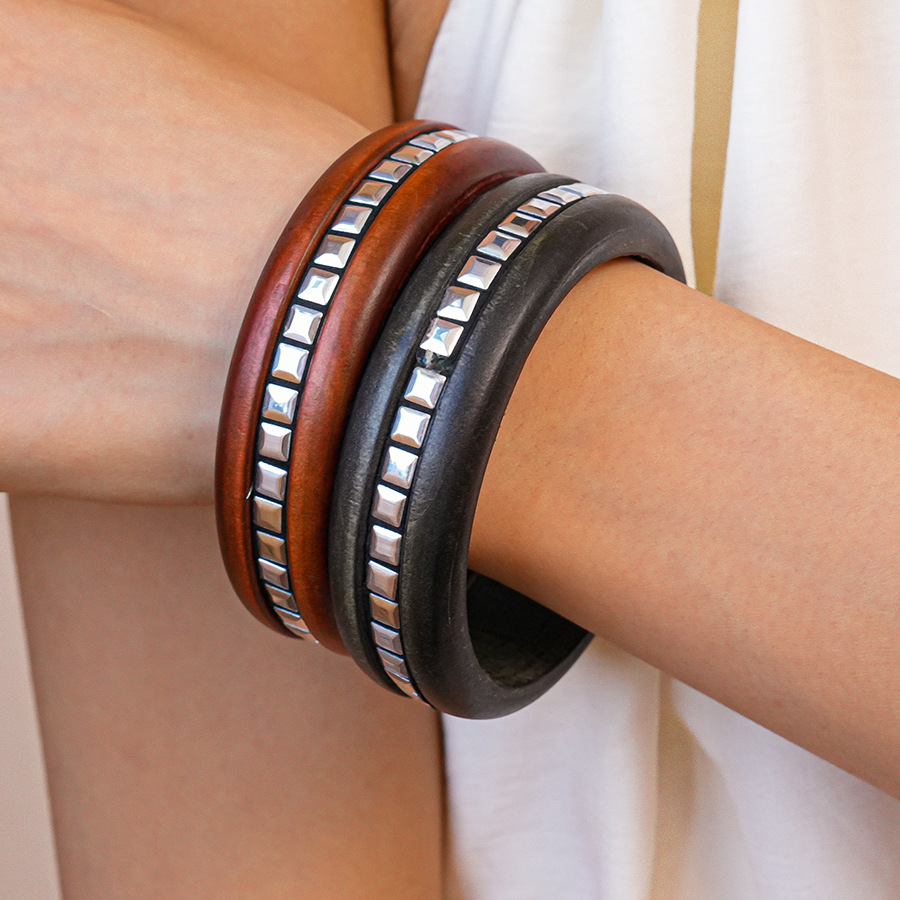 - Bracelets en bois, Buis, fleur