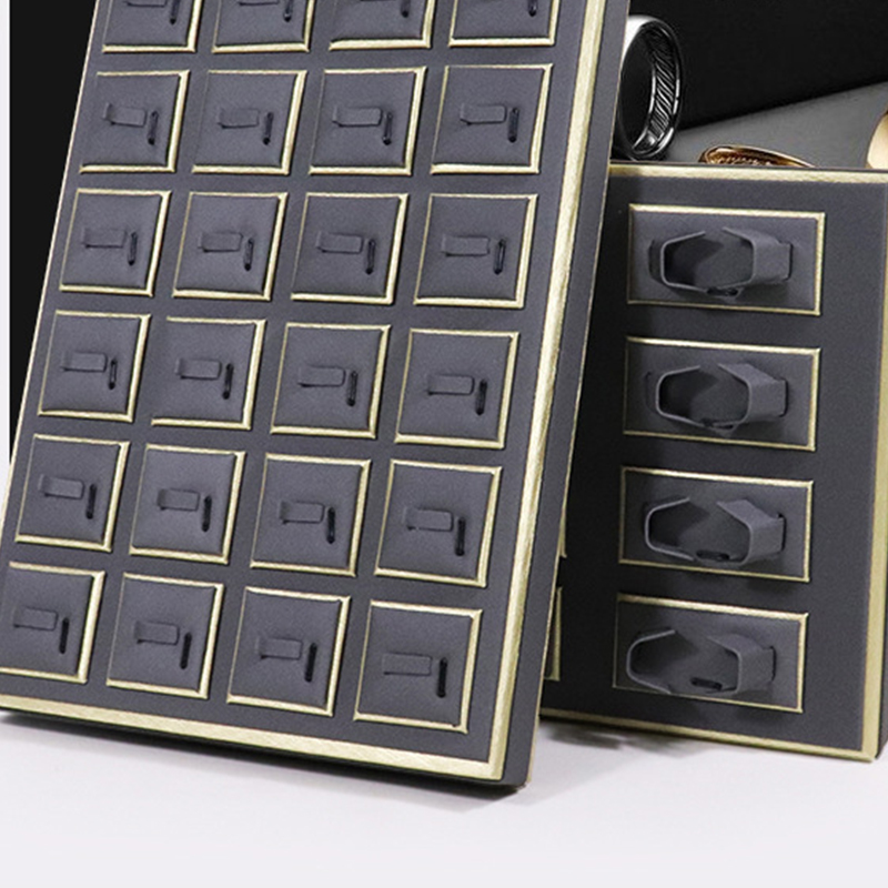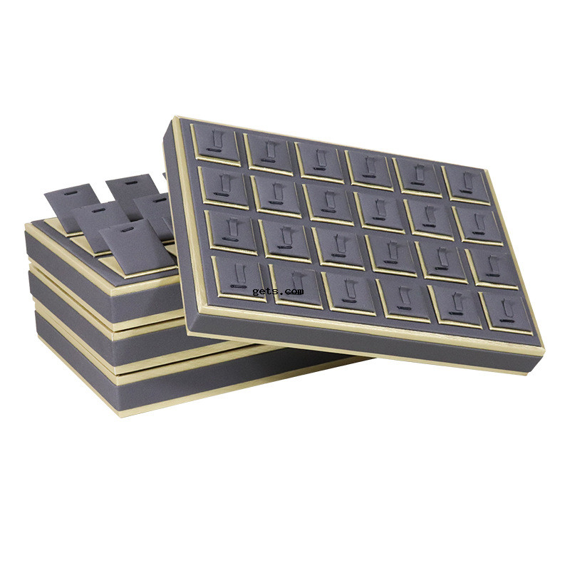 - Présentoir bijoux de mode, Microfibre PU, avec bois