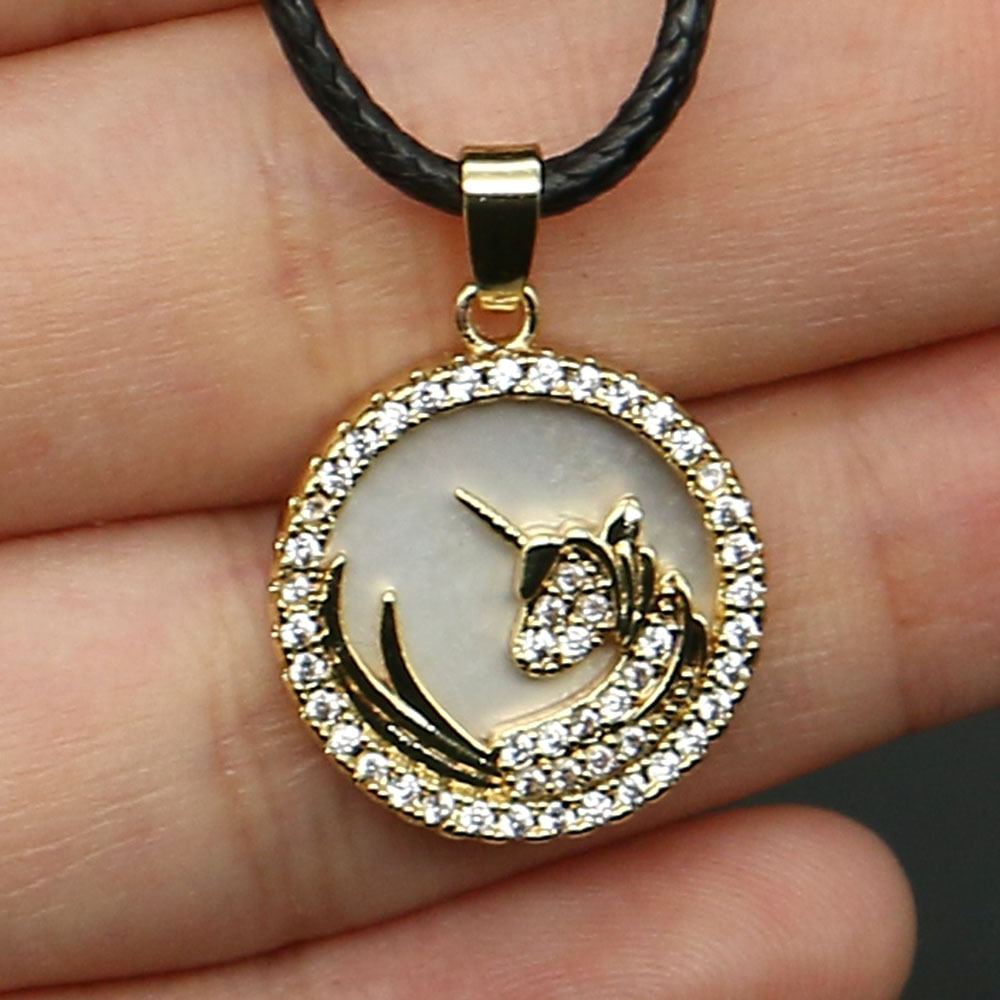 coquille collier, avec cuir PU & laiton, Plat rond, Placage de couleur d'or, bijoux de mode & unisexe & avec strass, plus de couleurs à choisir, Longueur:Environ 19 pouce, Vendu par PC