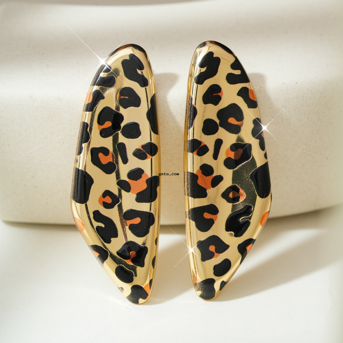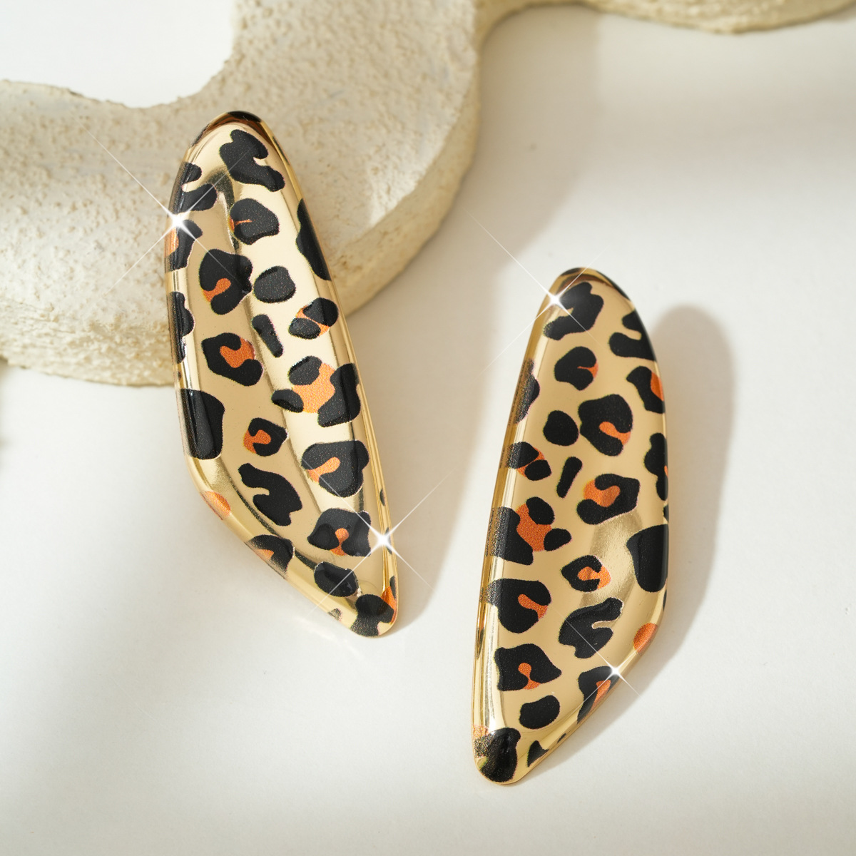 - fer Boucle d'oreille goutte, Motif géométrique, Placage