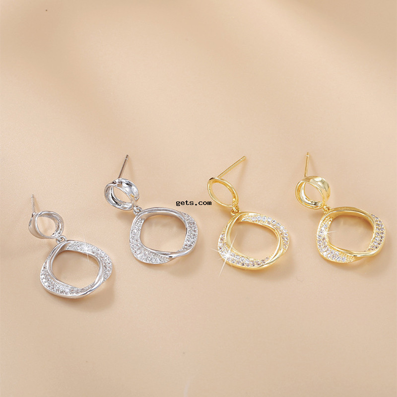 Boucles d'oreilles en laiton zircon cubique pavent, Placage de couleur d'or, bijoux de mode & modèles différents pour le choix & pavé de micro zircon