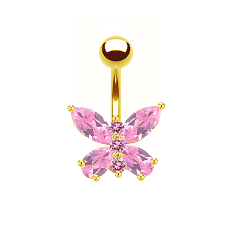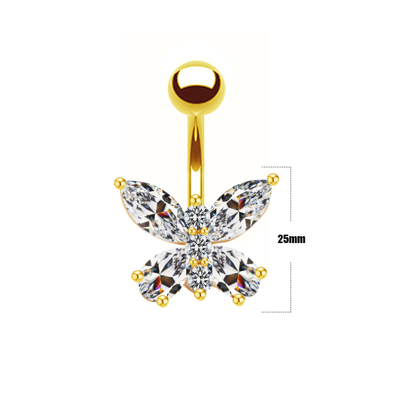 laiton anneau de ventre, papillon, Placage, unisexe & styles différents pour le choix & pavé de micro zircon, belly ring length 35-40mm, Vendu par PC