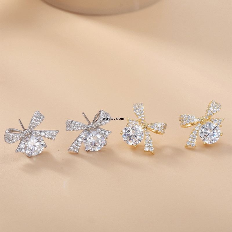 laiton boucle d oreille dormeuse, Noeud papillon, Placage, pavé de micro zircon & pour femme, plus de couleurs à choisir, 15x11.50mm, Vendu par paire