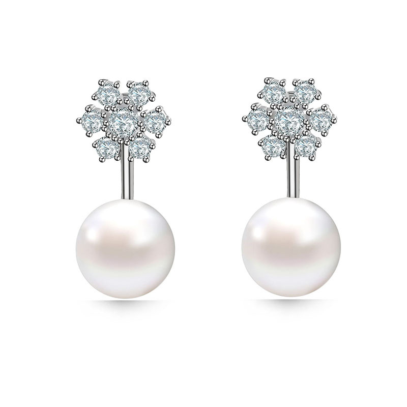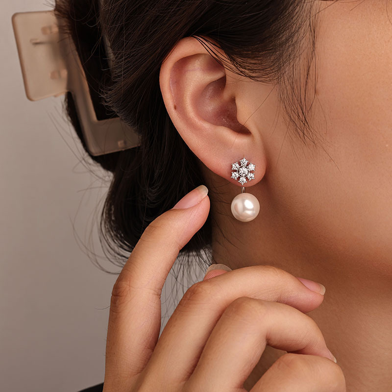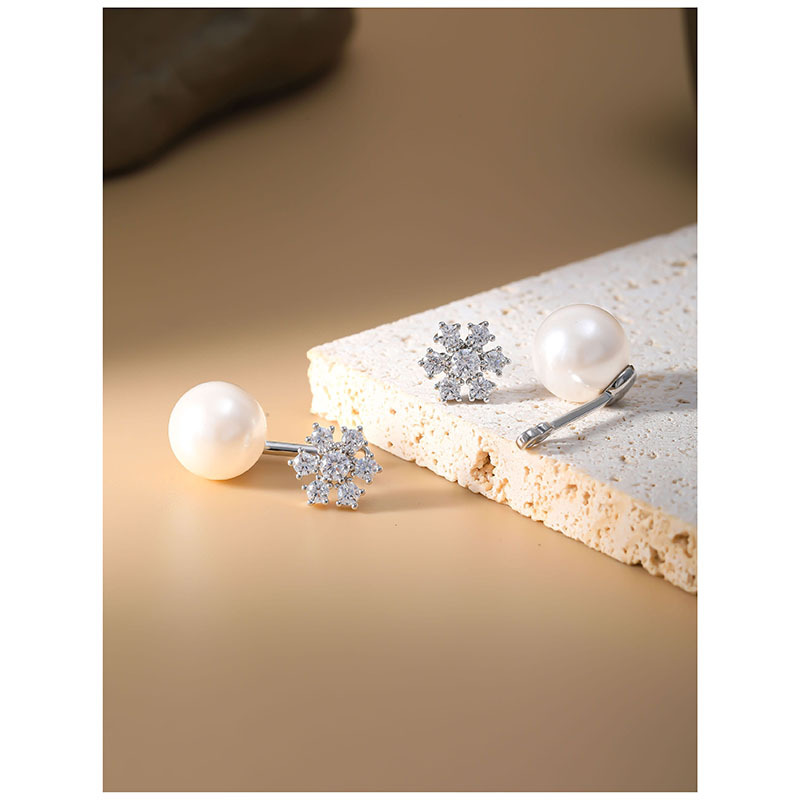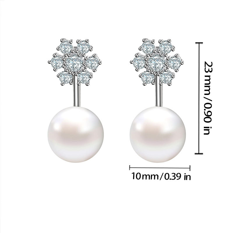 laiton boucle d oreille dormeuse, avec perle de plastique, flocon de neige, Placage, pavé de micro zircon & pour femme, argent, 10x23mm, Vendu par PC