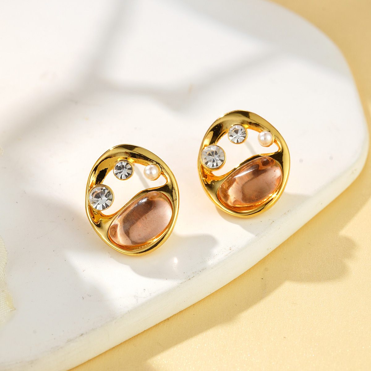 laiton boucle d oreille dormeuse, avec verre, Placage de couleur d'or, bijoux de mode & pavé de micro zircon, plus de couleurs à choisir, Vendu par paire
