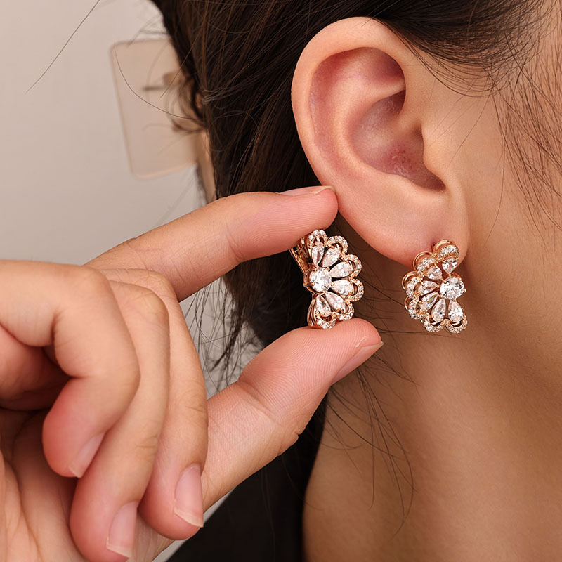 - Boucles d'oreilles en laiton zircon cubique pavent, Plaqué d'or, pavé de micro zircon & pour femme