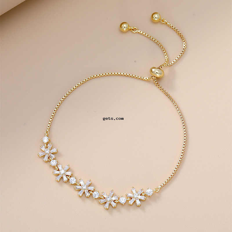 laiton bracelet, flocon de neige, réglable & pavé de micro zircon & pour femme, plus de couleurs à choisir, Longueur:Environ 6-9 pouce, Vendu par PC
