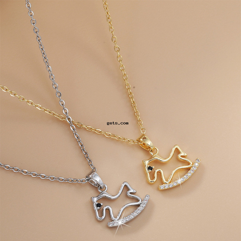 - Collier en laiton cubique Zircon Micro Pave, feuille, Placage