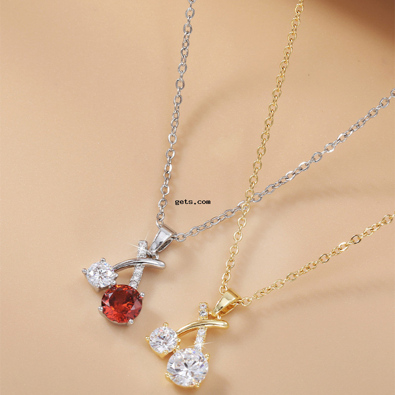 laiton collier, cerise, Placage, pavé de micro zircon & pour femme, plus de couleurs à choisir, Longueur:Environ 17 pouce, Vendu par PC