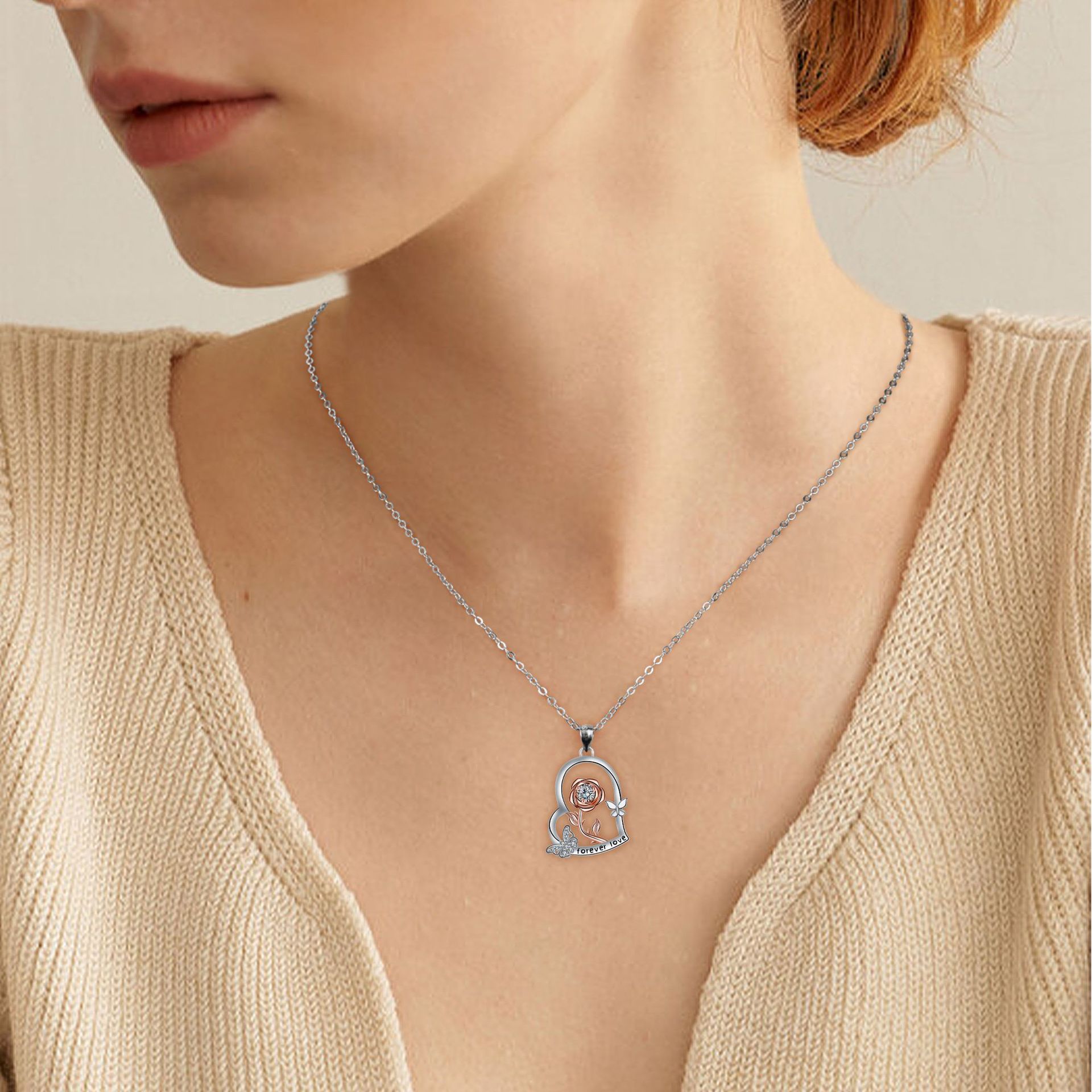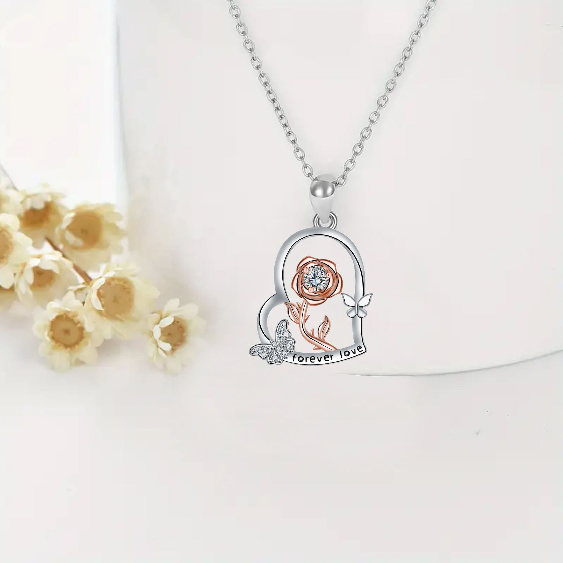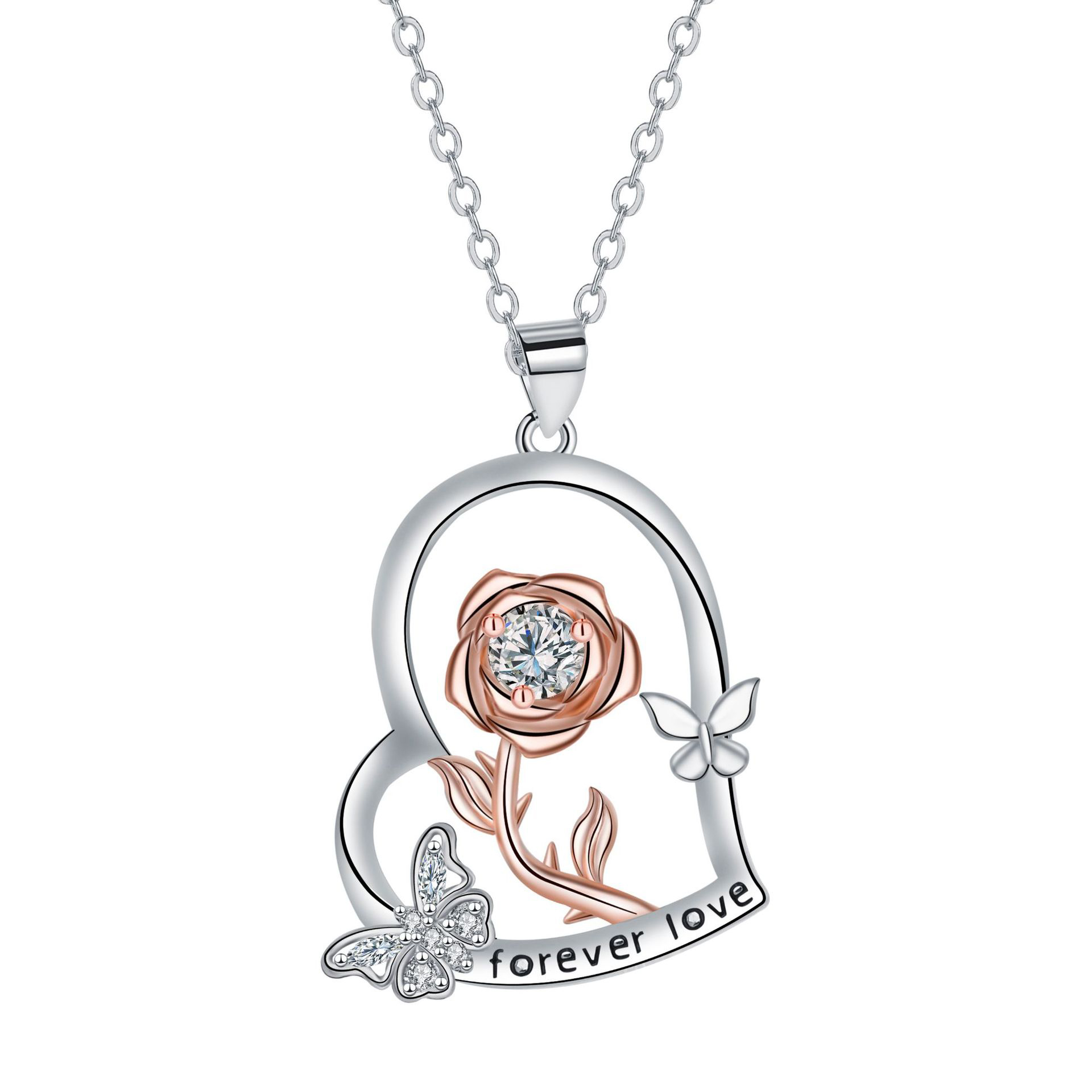 laiton collier, avec 5cm chaînes de rallonge, coeur, Placage, Bijoux Fête des Mères & avec le motif de fleurs & pour femme & avec strass, Longueur:Environ 45 cm, Vendu par PC
