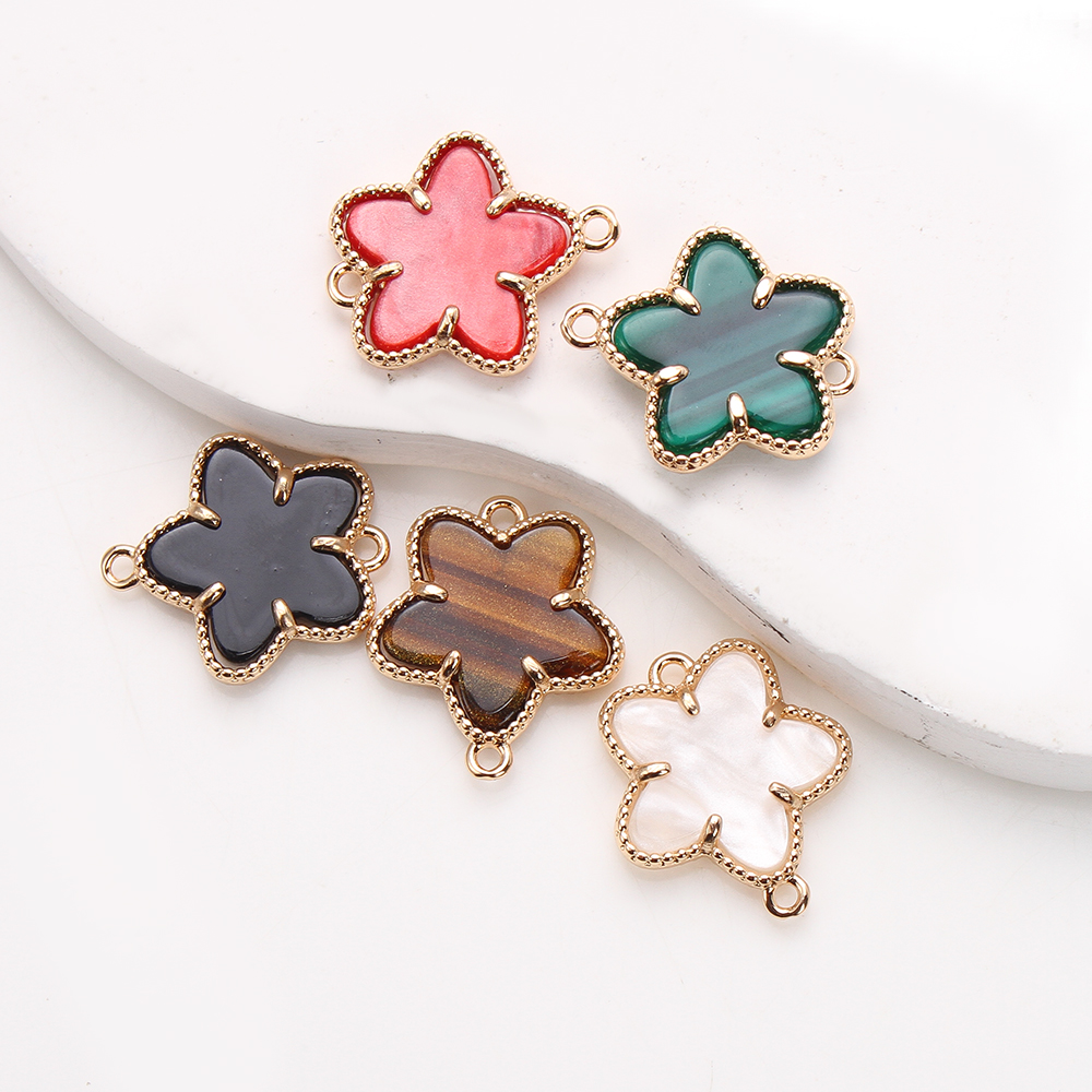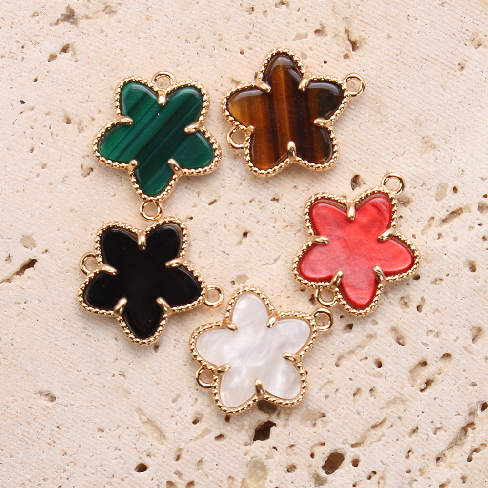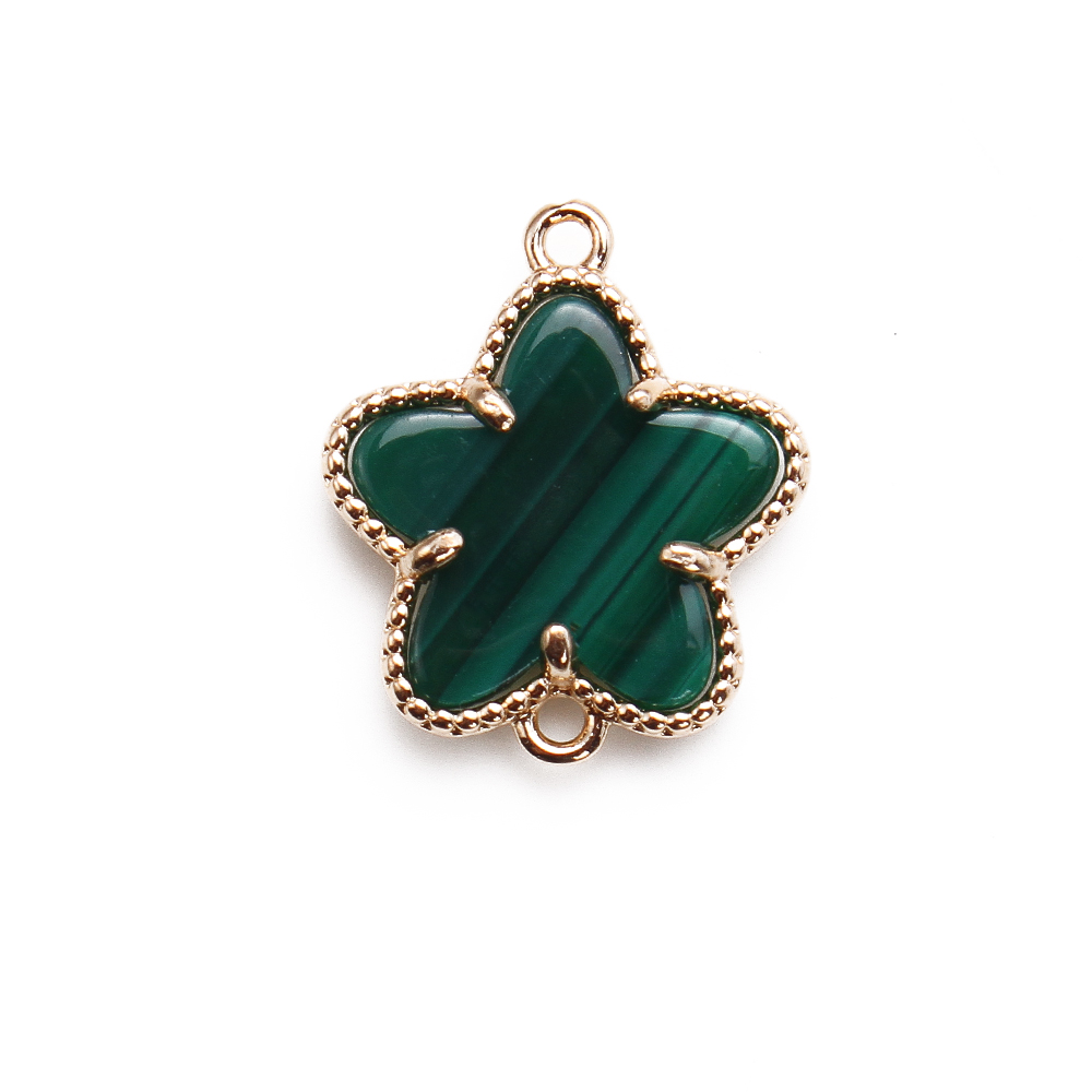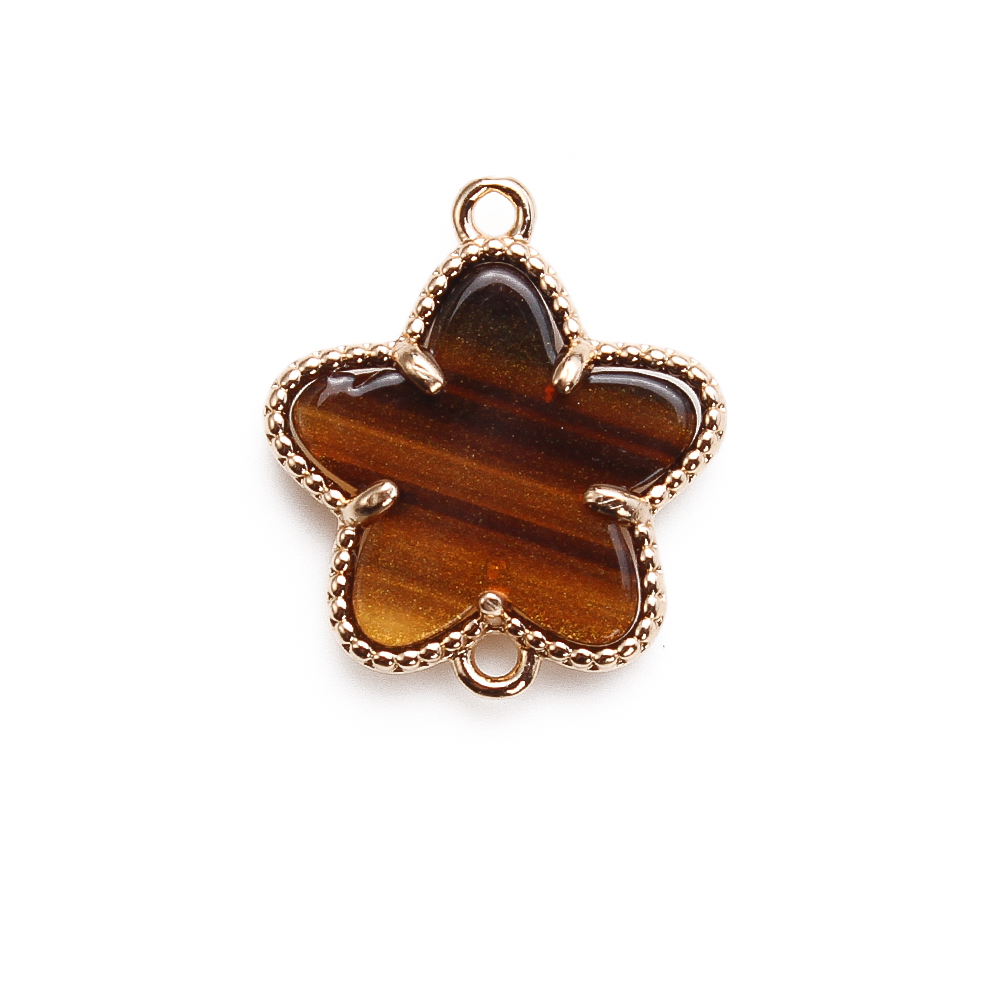 laiton connecteur, avec pierre gemme, fleur, Placage, DIY, doré, protéger l'environnement, sans nickel, plomb et cadmium, 16.16x3.96x19.38mm, 30PC/sac, Vendu par sac