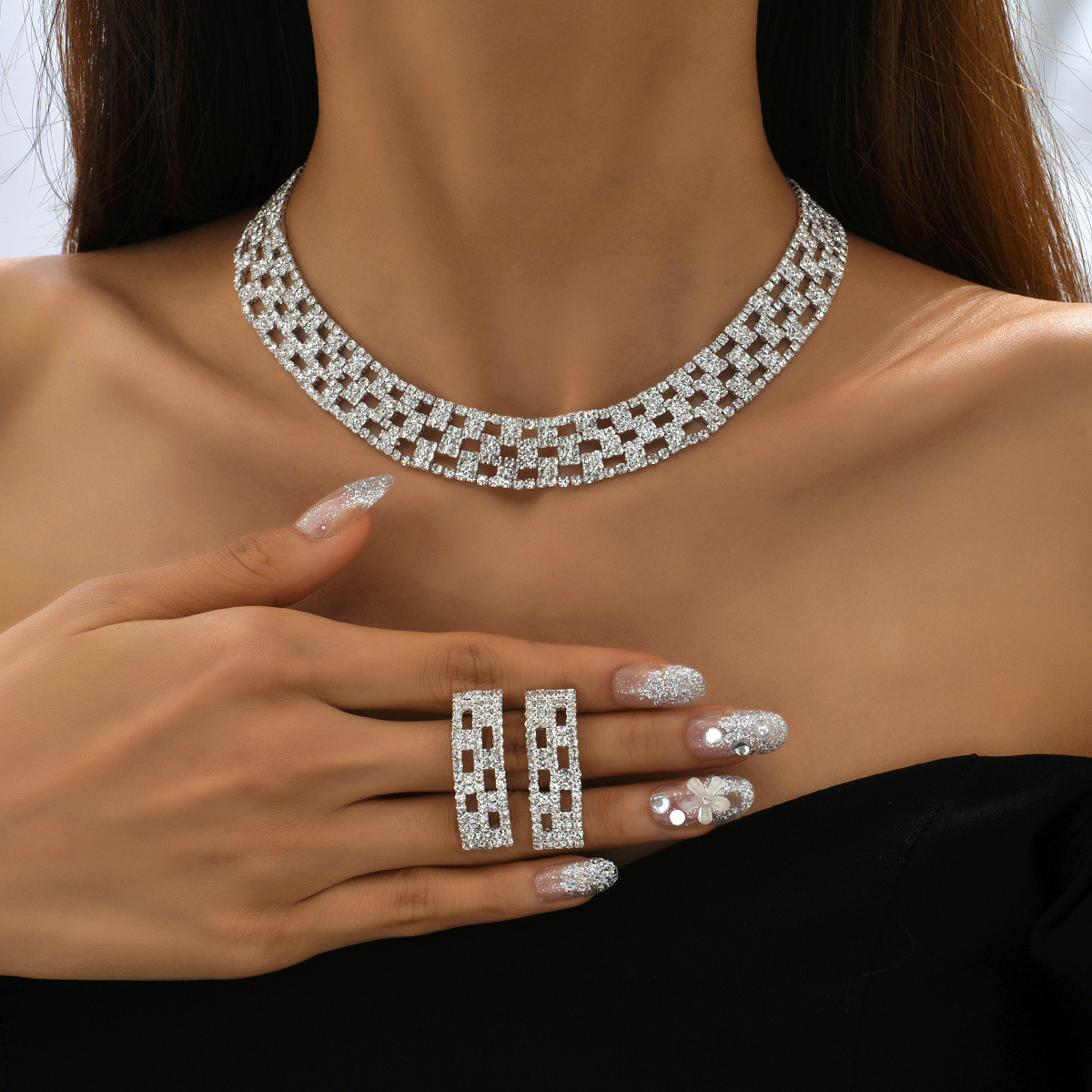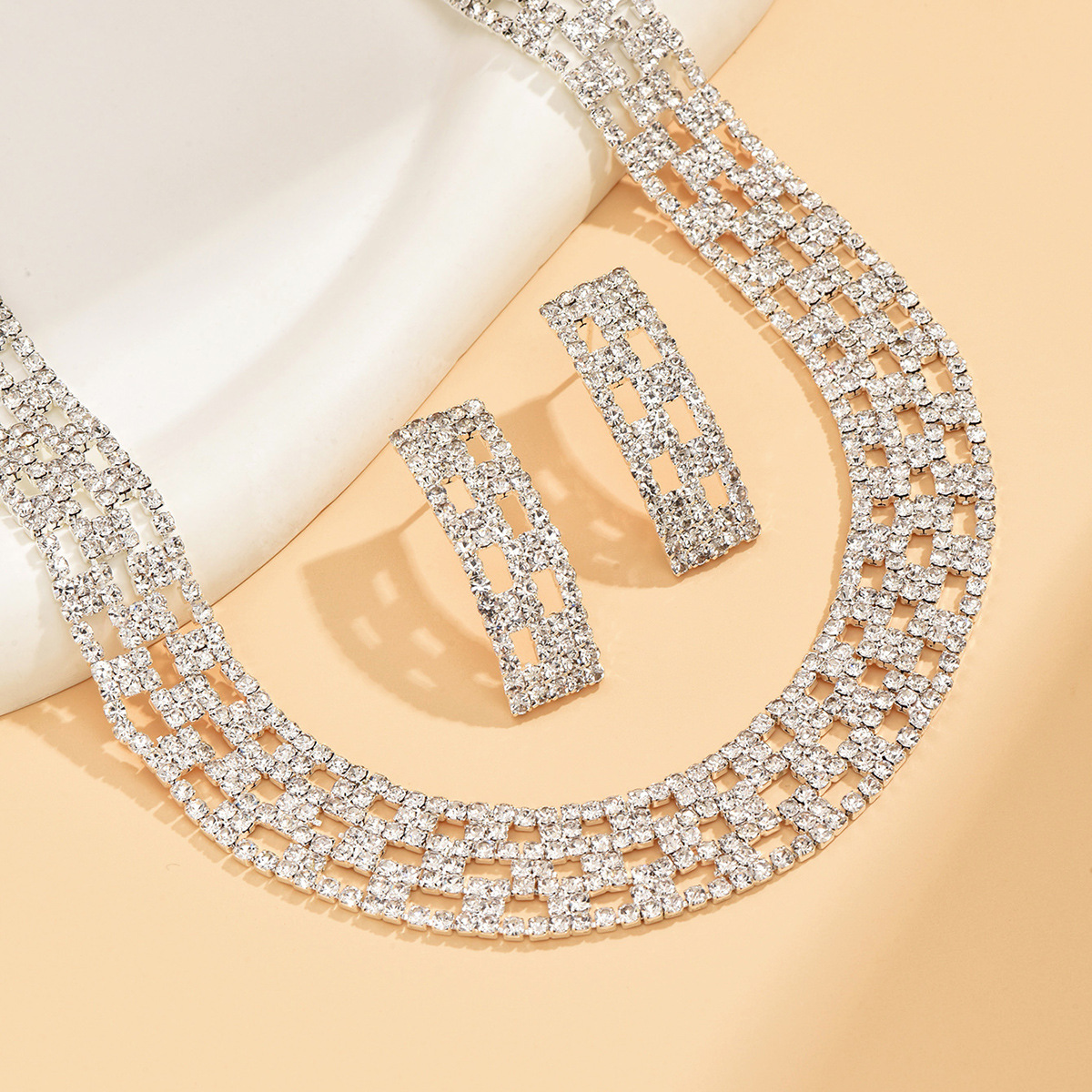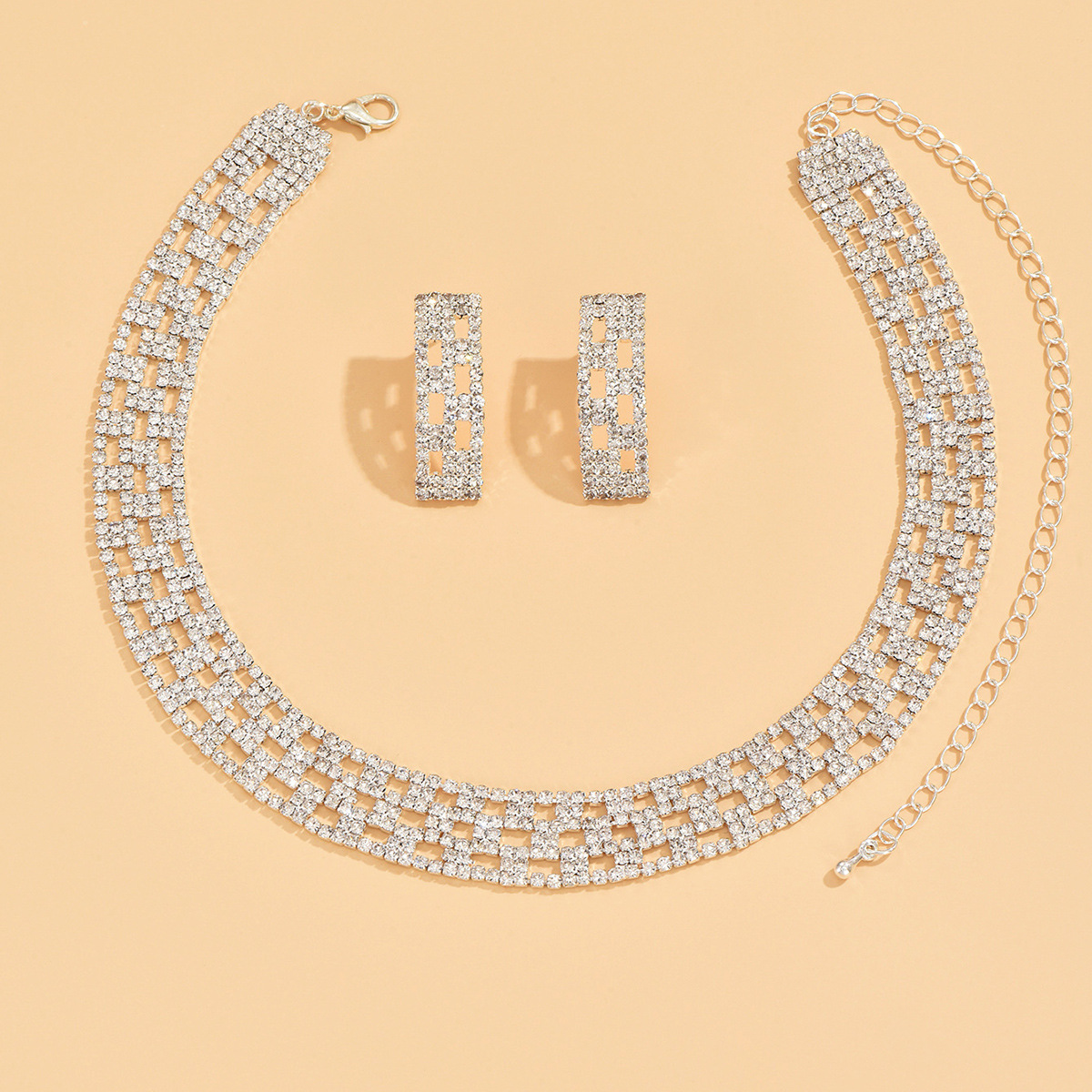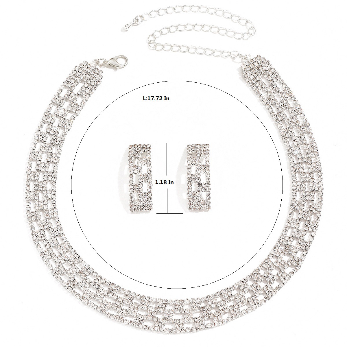 laiton parure de bijoux, boucle d'oreille & collier, Placage de couleur argentée, 2 pièces & pour femme & avec strass, Vendu par fixé