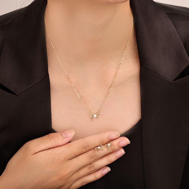 laiton parure de bijoux, Boucle d’oreille stud & collier, Noeud papillon, Placage, 2 pièces & pour femme & avec strass, plus de couleurs à choisir, Vendu par fixé