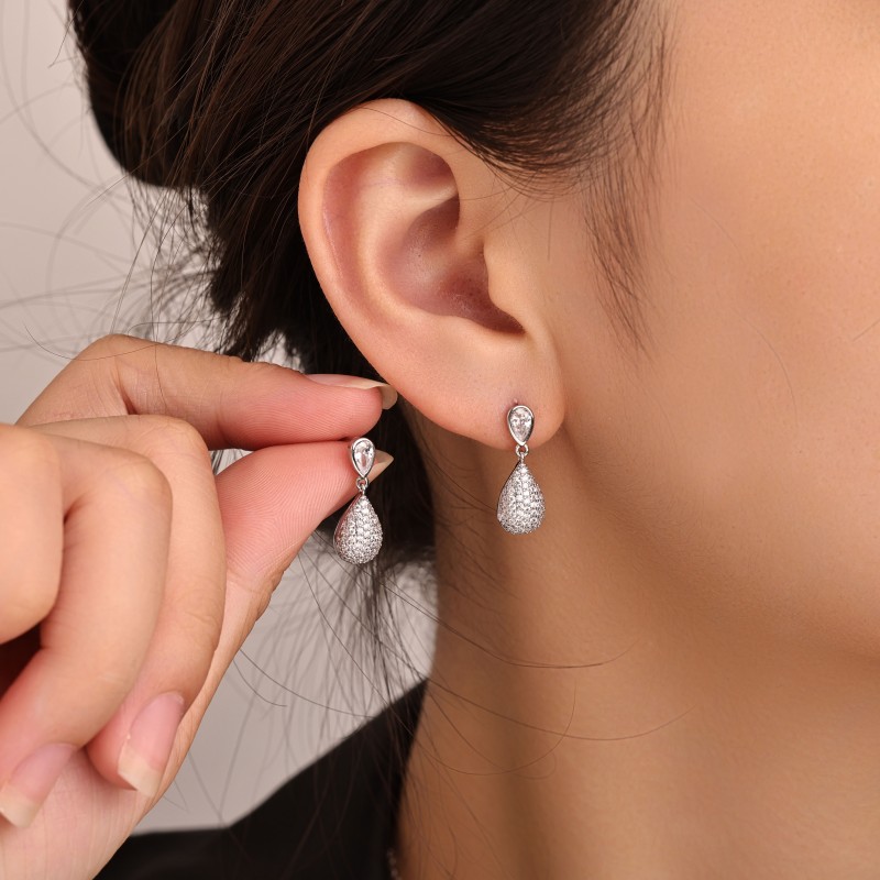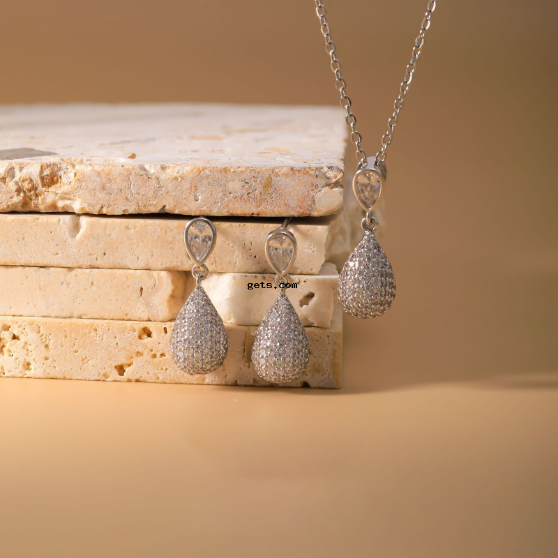 laiton parure de bijoux, boucle d'oreille & collier, larme, Placage, 2 pièces & pour femme & avec strass, Vendu par fixé