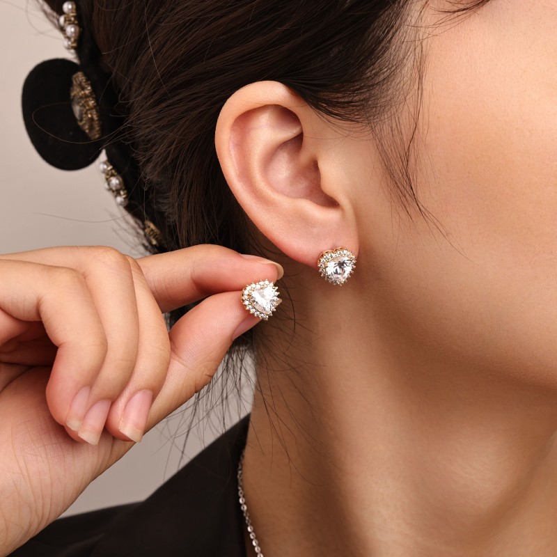 Zircon cubique Micro Pave parures de bijoux en laiton, coeur, Plaqué d'or