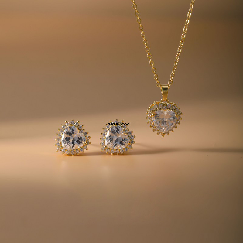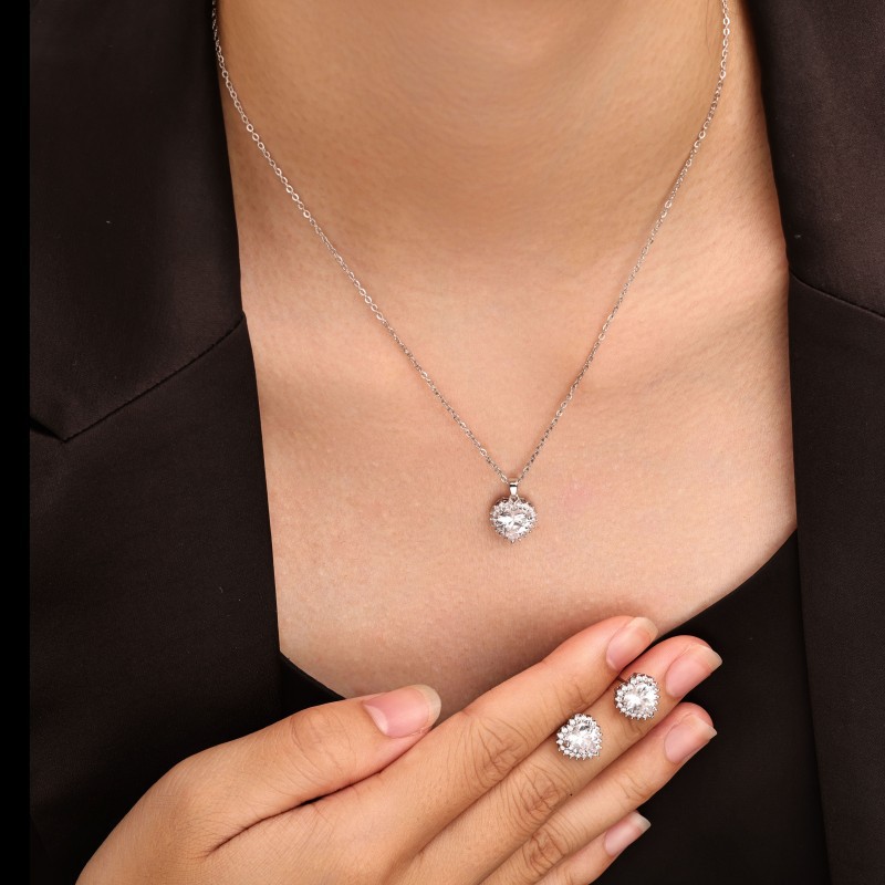 laiton parure de bijoux, Boucle d’oreille stud & collier, coeur, Placage, 2 pièces & pavé de micro zircon & pour femme, plus de couleurs à choisir, Vendu par fixé