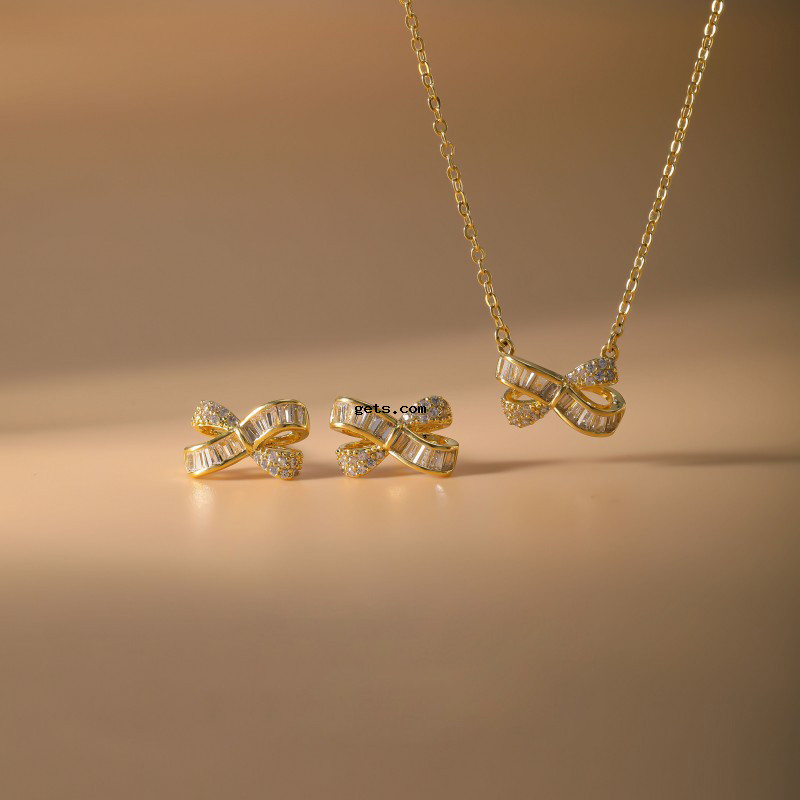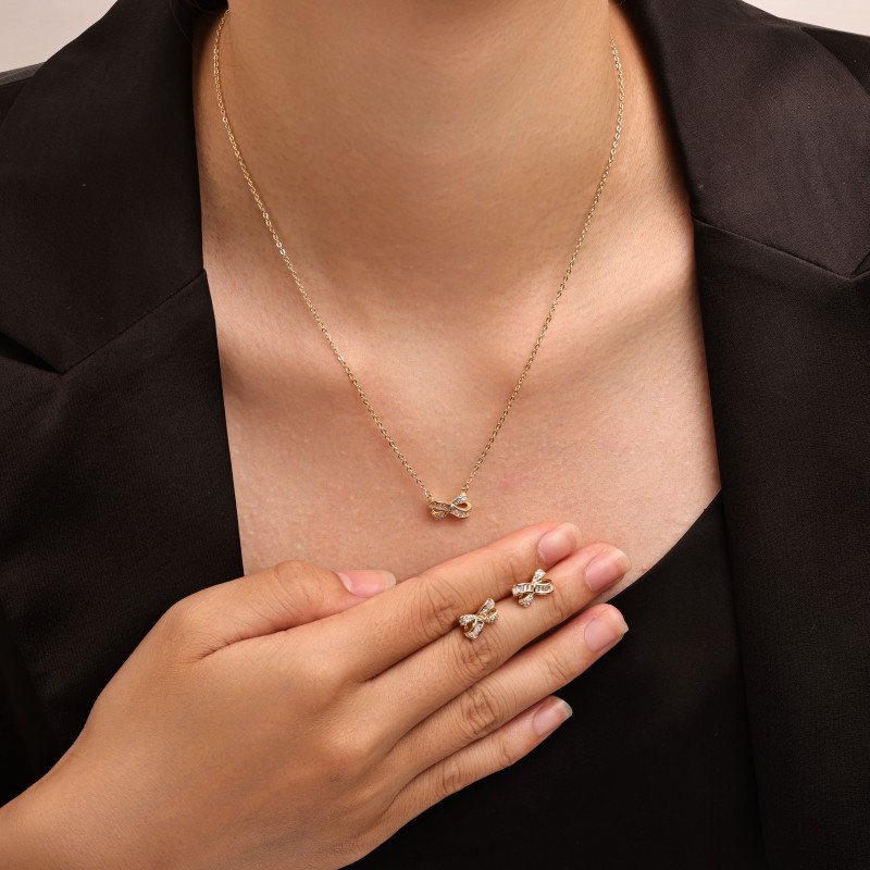 laiton parure de bijoux, Boucle d’oreille stud & collier, Noeud papillon, Placage, 2 pièces & pavé de micro zircon & pour femme, plus de couleurs à choisir, Vendu par fixé