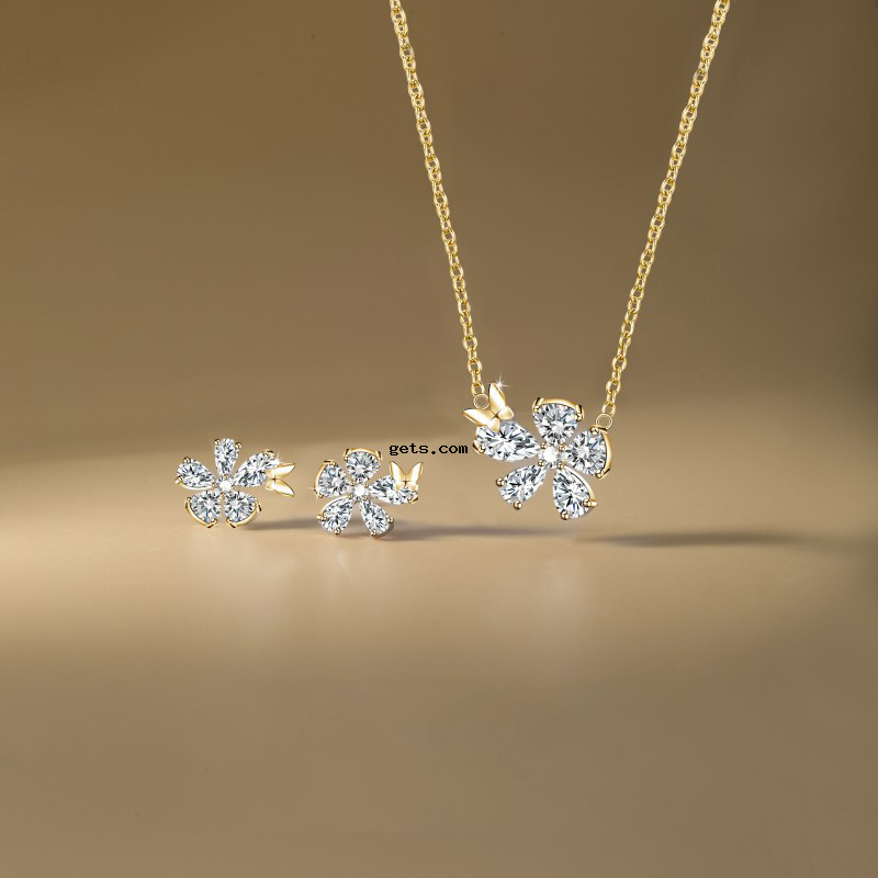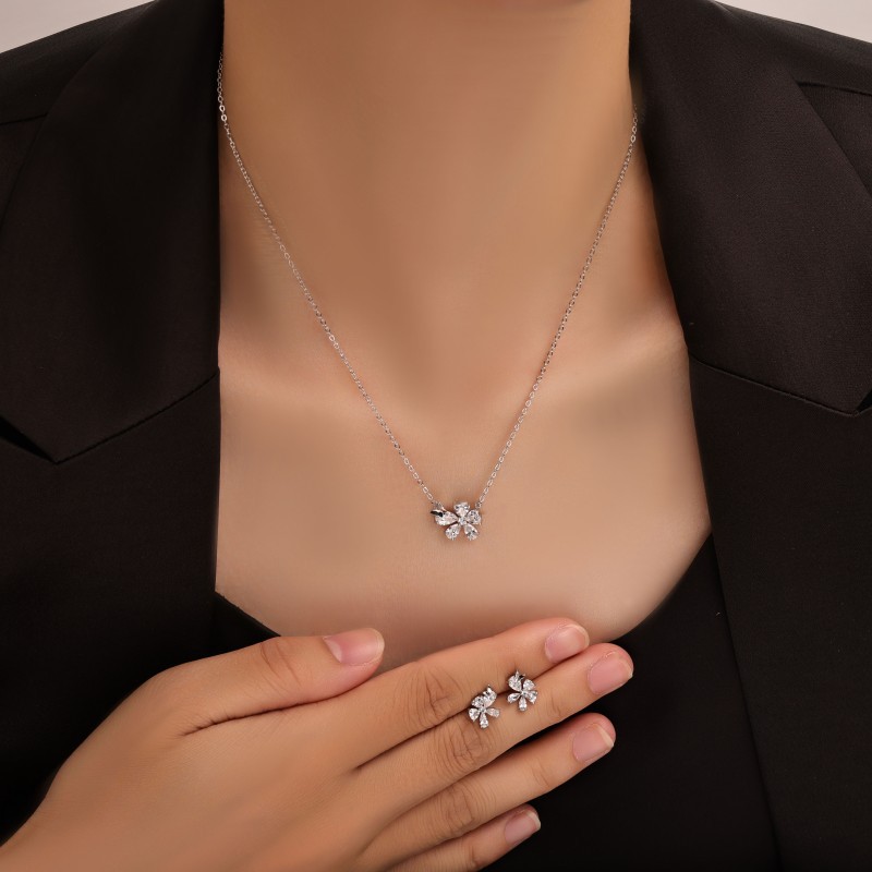 laiton parure de bijoux, Boucle d’oreille stud & collier, fleur, Placage, 2 pièces & pour femme & avec strass, plus de couleurs à choisir, Vendu par fixé