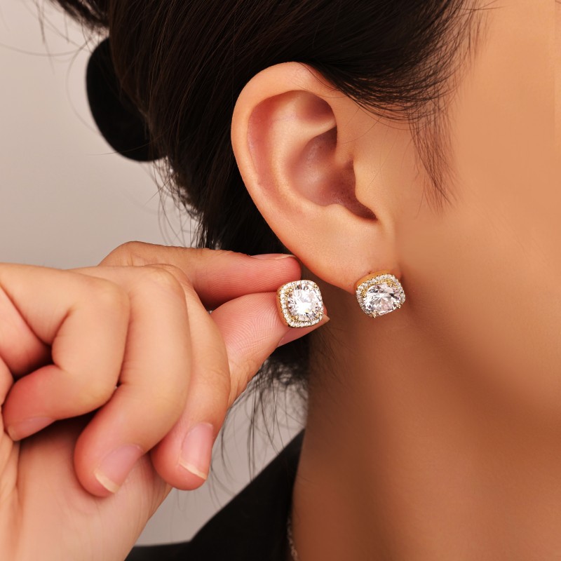 laiton parure de bijoux, Boucle d’oreille stud & collier, cadre, Placage, 2 pièces & pavé de micro zircon & pour femme, plus de couleurs à choisir, Vendu par fixé