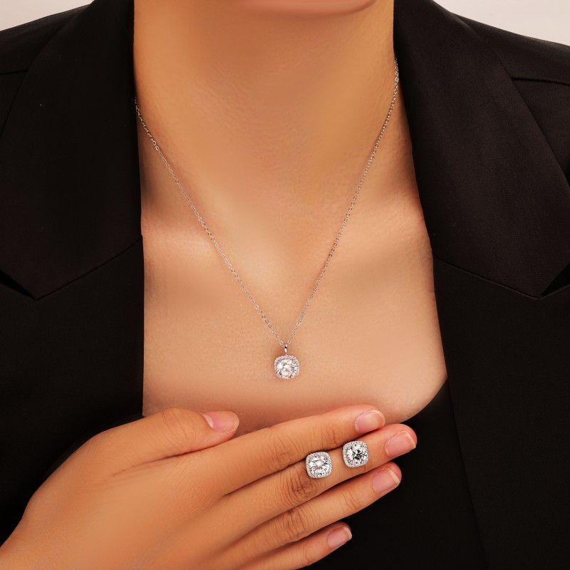 Zircon cubique Micro Pave parures de bijoux en laiton, Boucle d’oreille stud & collier, avec 6cm chaînes de rallonge