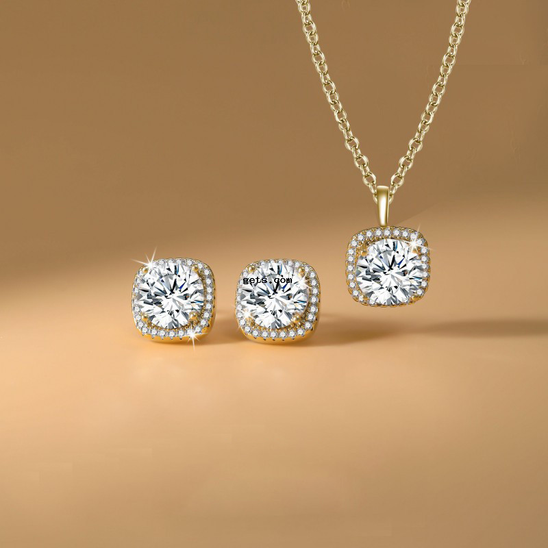 Zircon cubique Micro Pave parures de bijoux en laiton, Boucle d’oreille stud & collier, Placage