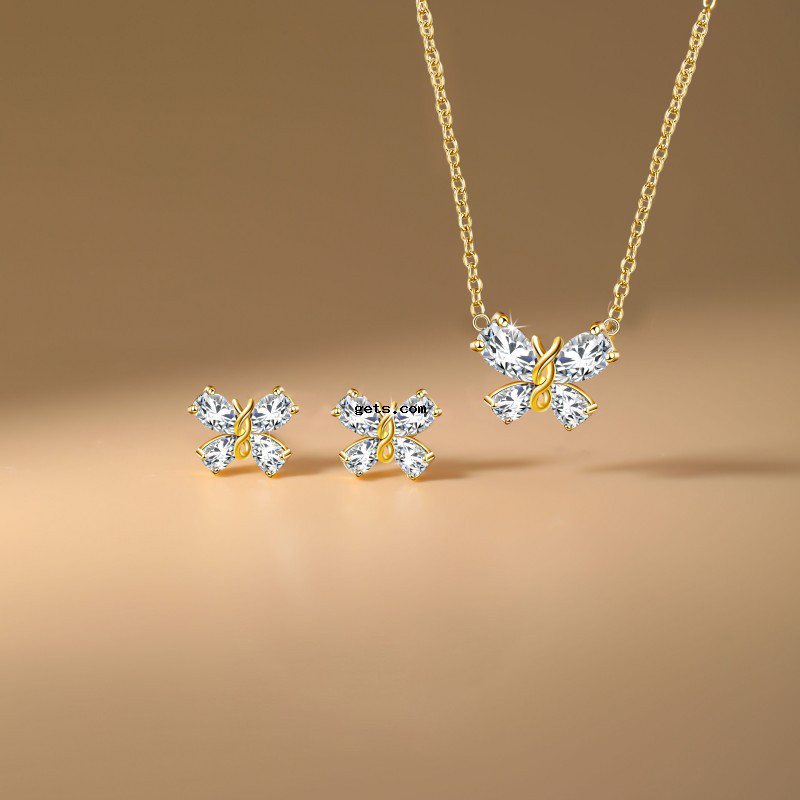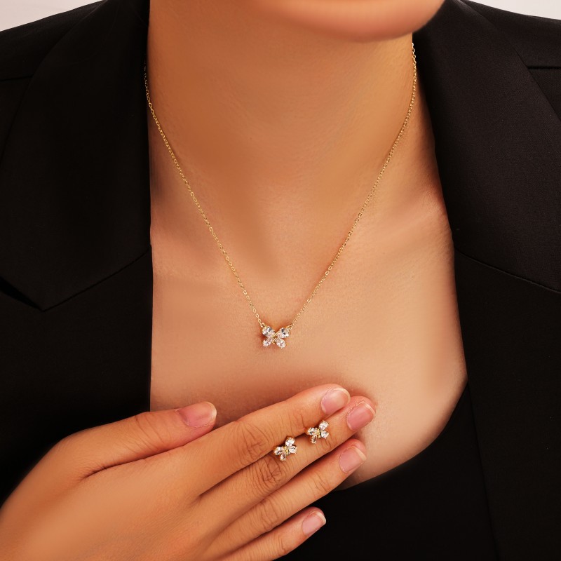 laiton parure de bijoux, Boucle d’oreille stud & collier, papillon