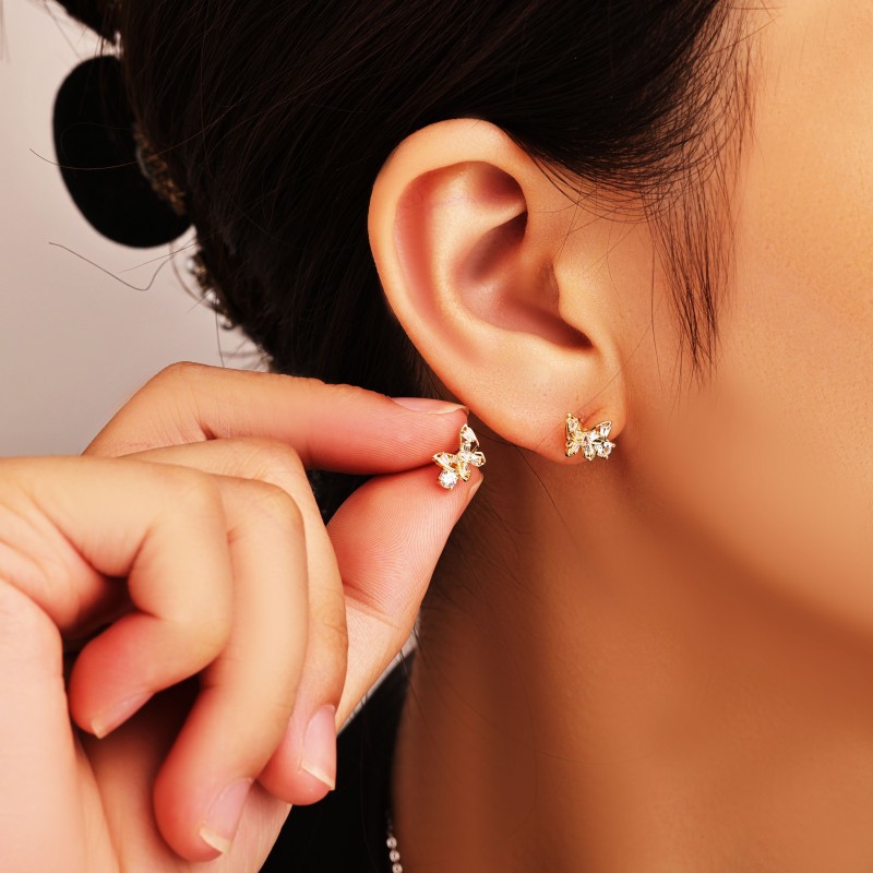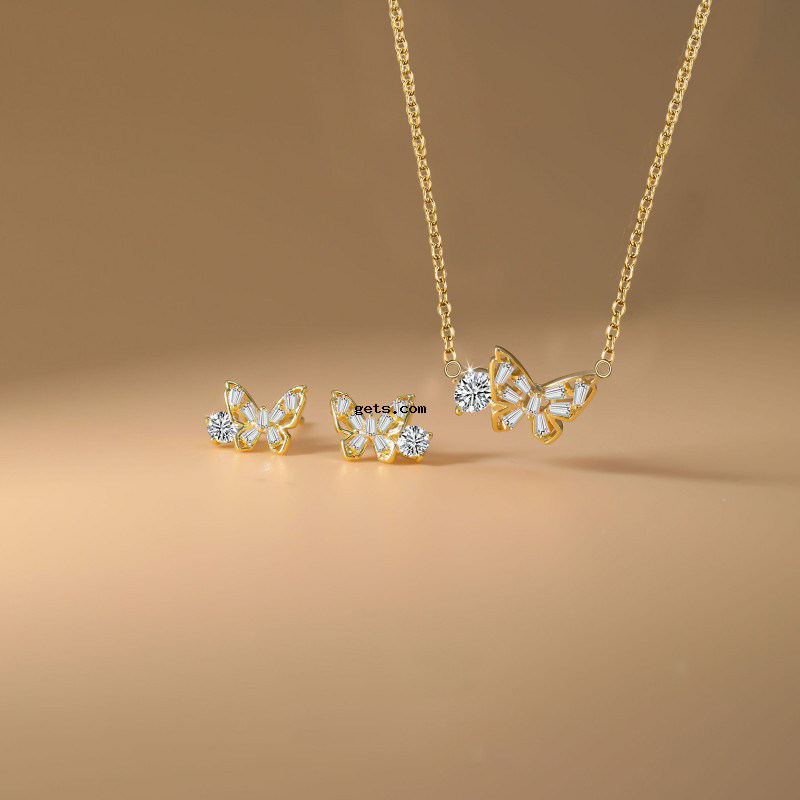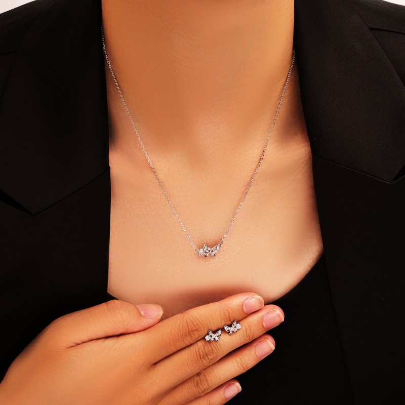 laiton parure de bijoux, Boucle d’oreille stud & collier, papillon, Placage, 2 pièces & pour femme & avec strass, plus de couleurs à choisir, Vendu par fixé