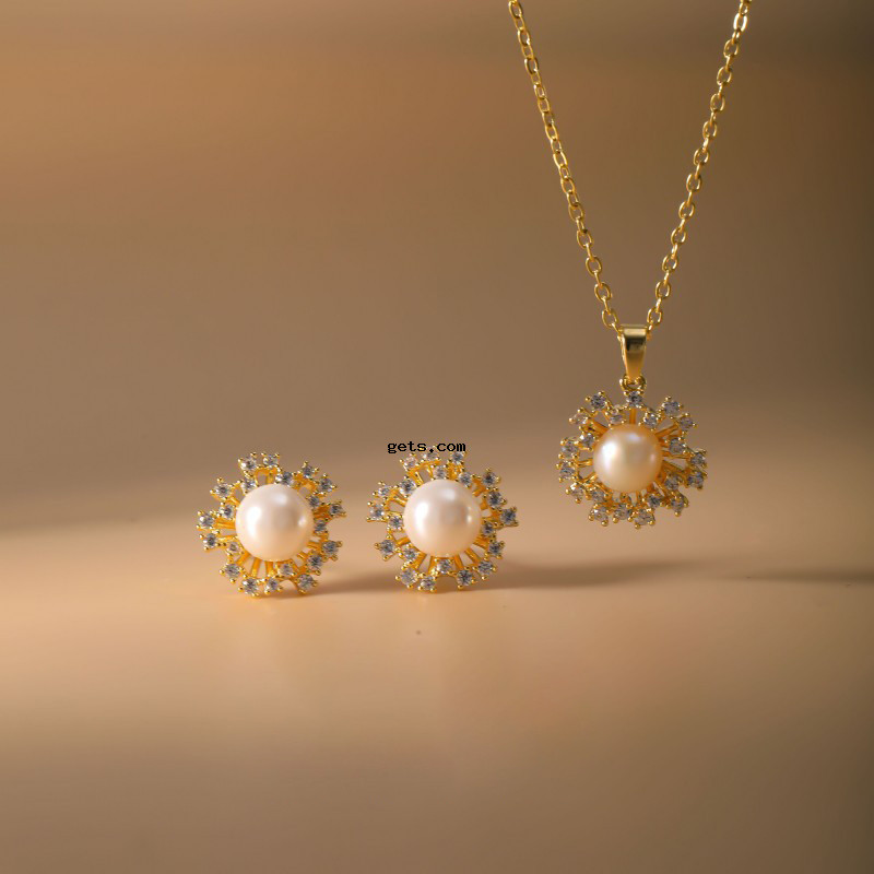 - Zircon cubique Micro Pave parures de bijoux en laiton, pendentif & boucle d'oreille, Placage de couleur d'or