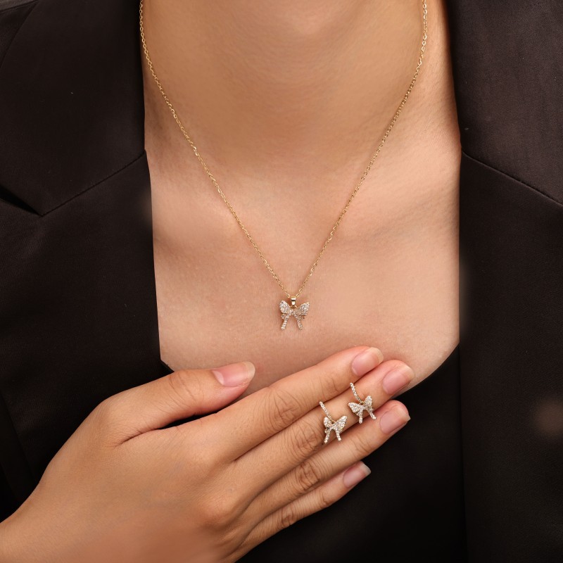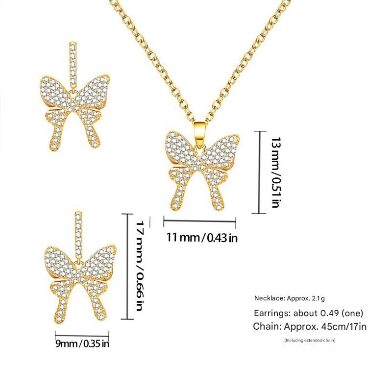 laiton parure de bijoux, boucle d'oreille & collier, papillon, Placage, 2 pièces & pour femme & avec strass, plus de couleurs à choisir, Vendu par fixé