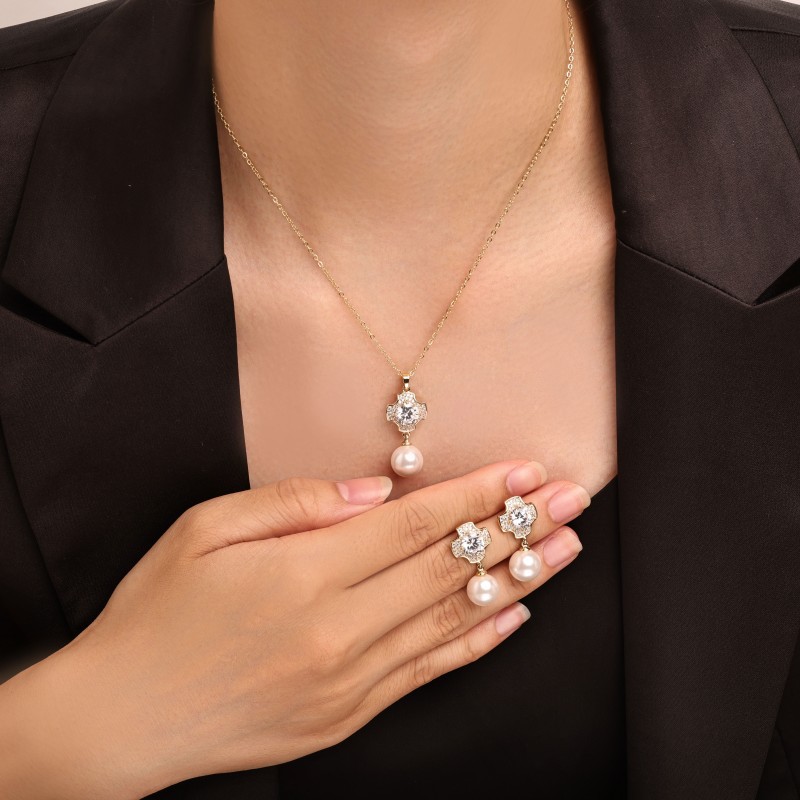 Zircon cubique Micro Pave parures de bijoux en laiton, boucle d'oreille & collier, 2 pièces & bijoux de mode & pavé de micro zircon & pour femme