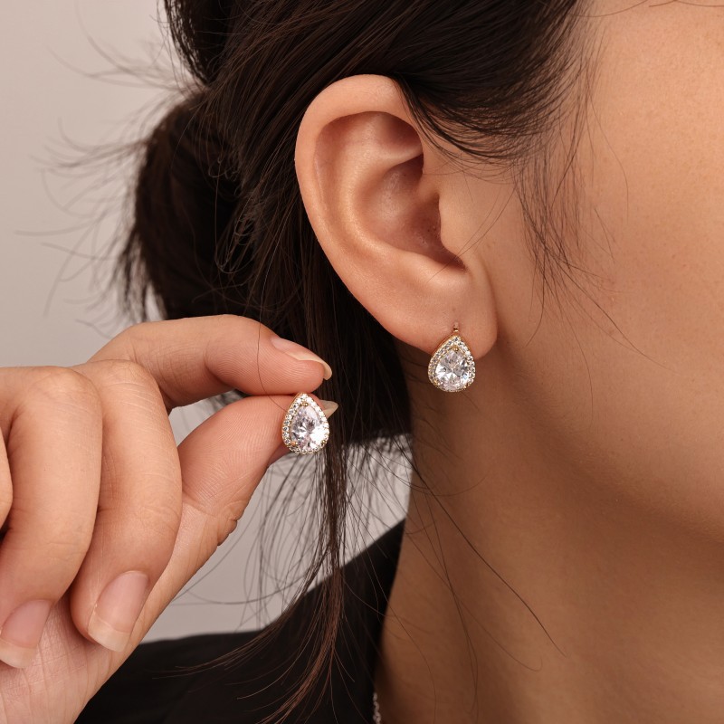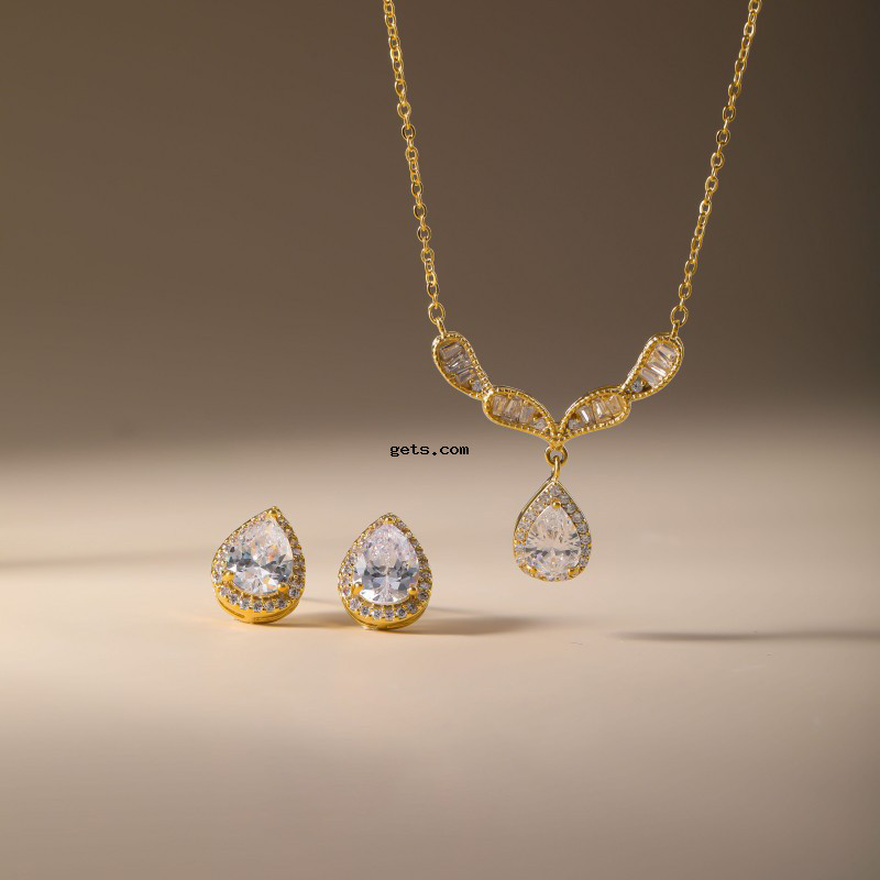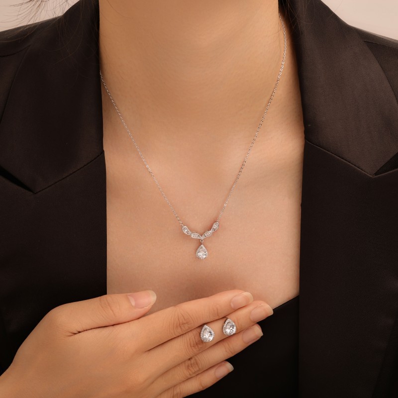 laiton parure de bijoux, Boucle d’oreille stud & collier, larme, Placage, 2 pièces & pavé de micro zircon & pour femme, plus de couleurs à choisir, Vendu par fixé