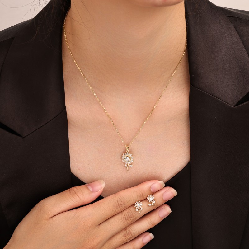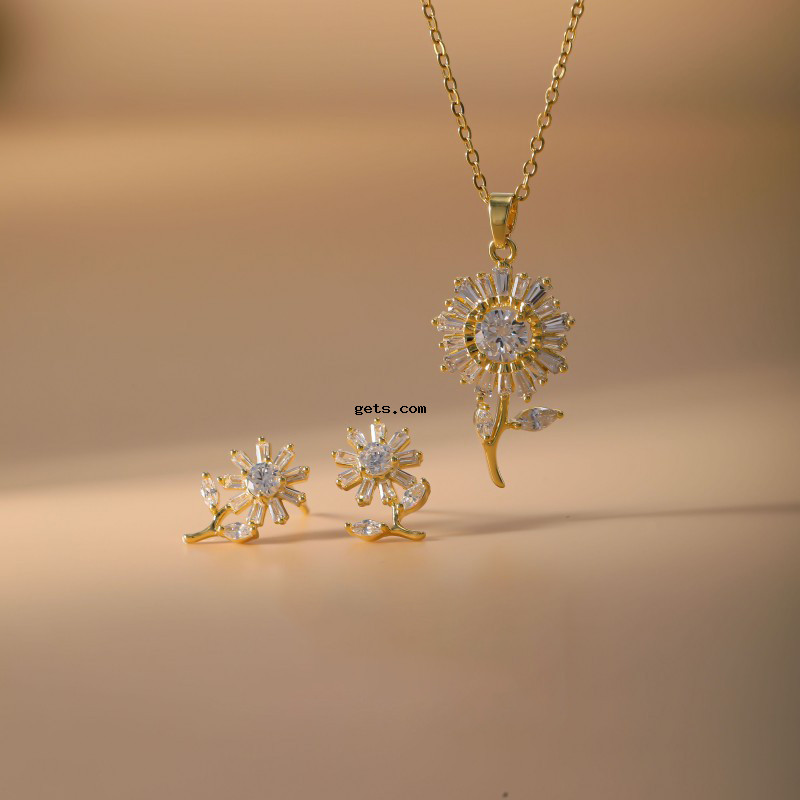laiton parure de bijoux, Boucle d’oreille stud & collier, fleur, Placage, 2 pièces & pavé de micro zircon & pour femme, plus de couleurs à choisir, Vendu par fixé