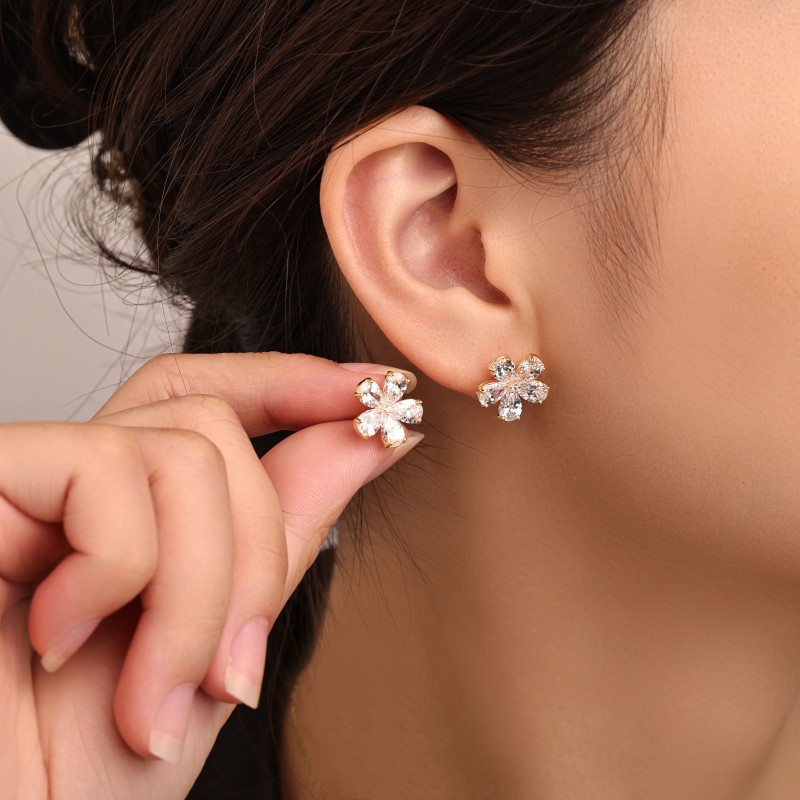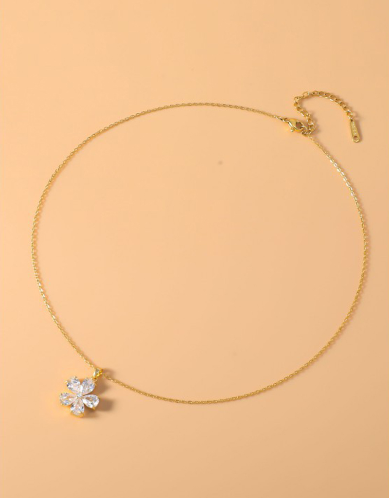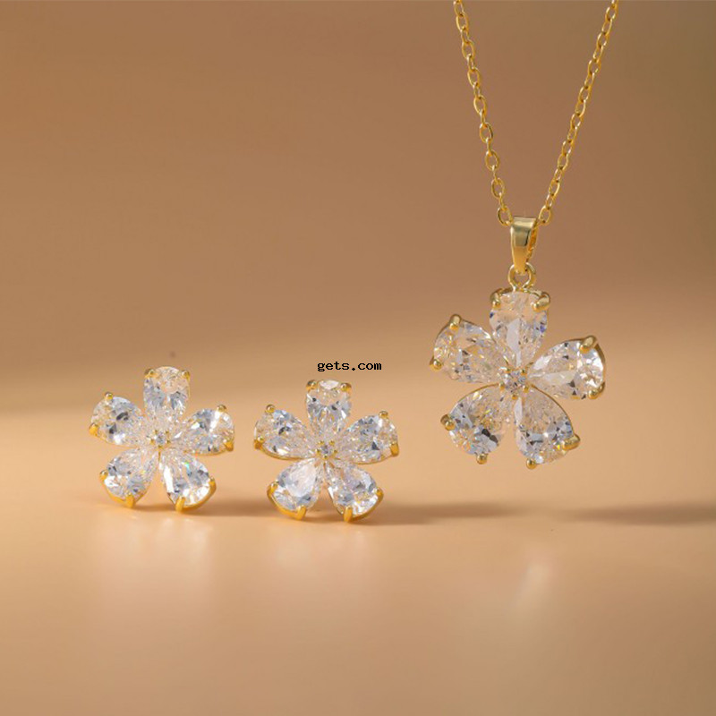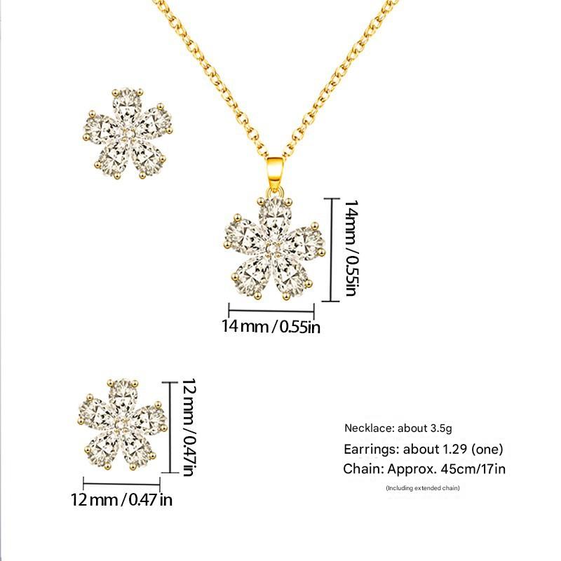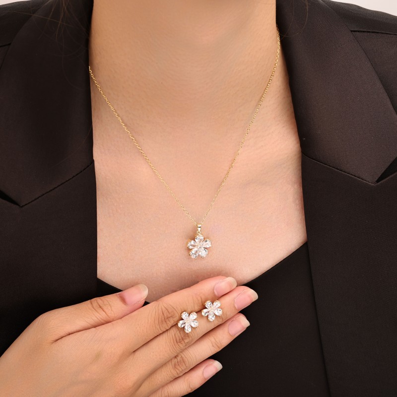 laiton parure de bijoux, Boucle d’oreille stud & collier, fleur, Placage, 2 pièces & pavé de micro zircon & pour femme, Or, Vendu par fixé
