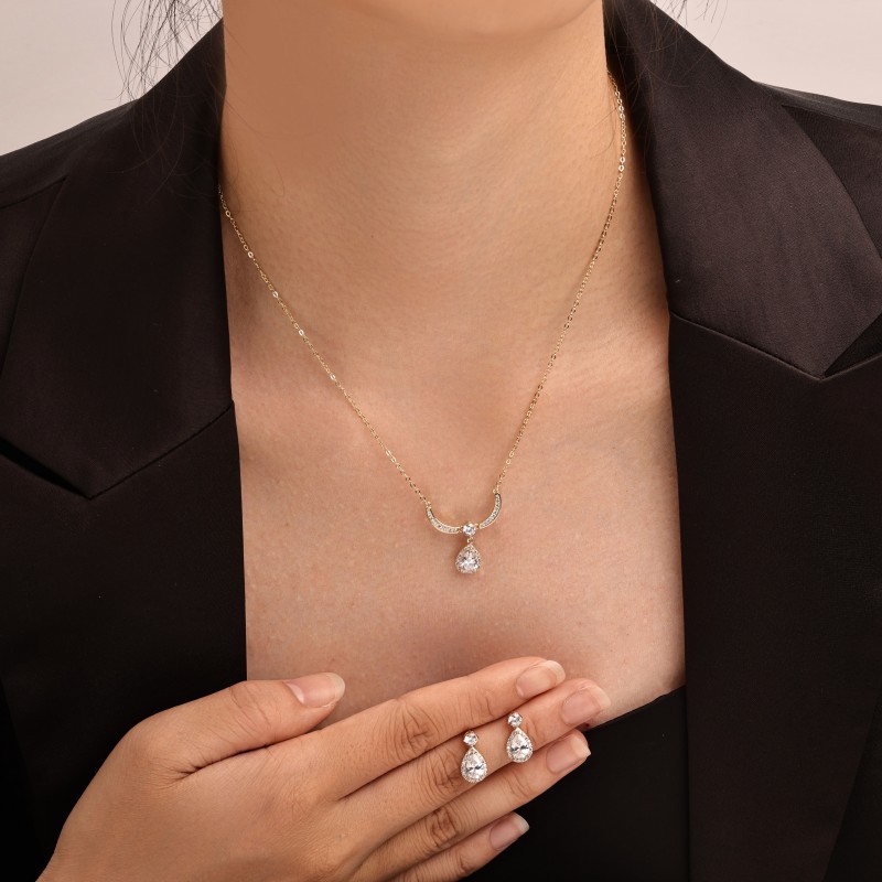 - Zircon cubique Micro Pave parures de bijoux en laiton, Boucle d’oreille stud & collier, 2 pièces & pavé de micro zircon & pour femme