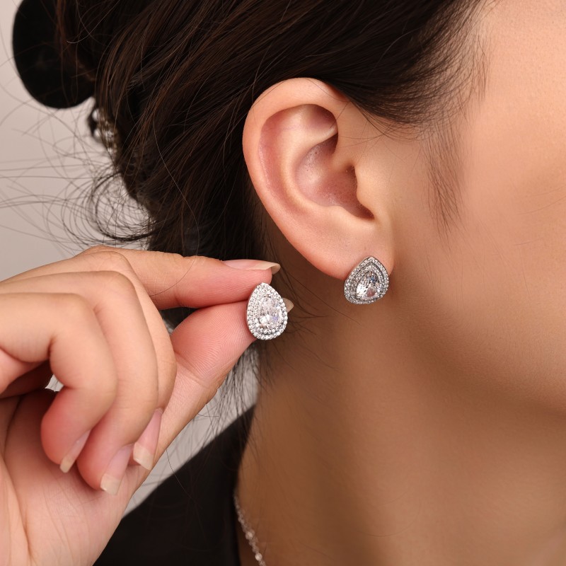 - Zircon cubique Micro Pave parures de bijoux en laiton, Boucle d’oreille stud & collier, Placage