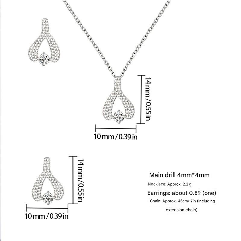 laiton parure de bijoux, Boucle d’oreille stud & collier, coeur, Placage, 2 pièces & pavé de micro zircon & pour femme, argent, Vendu par fixé