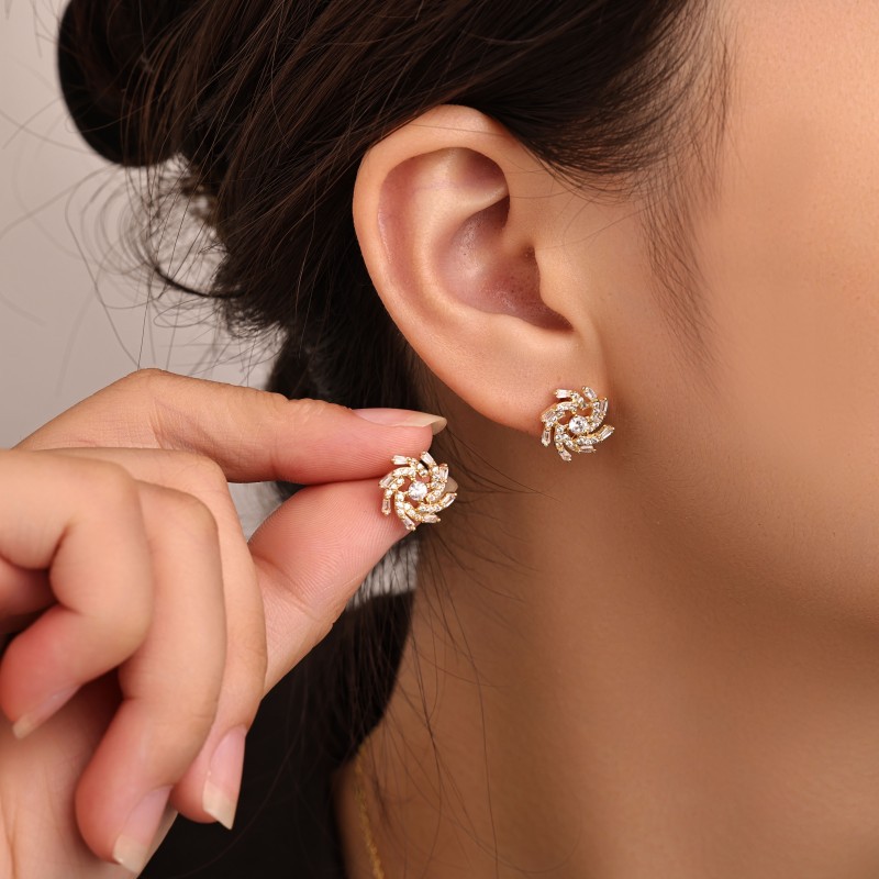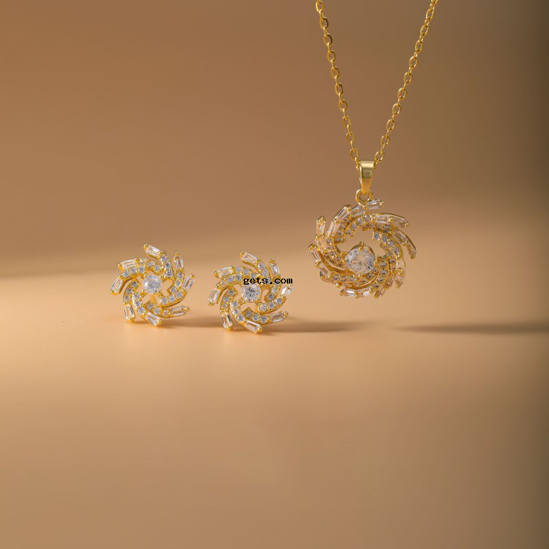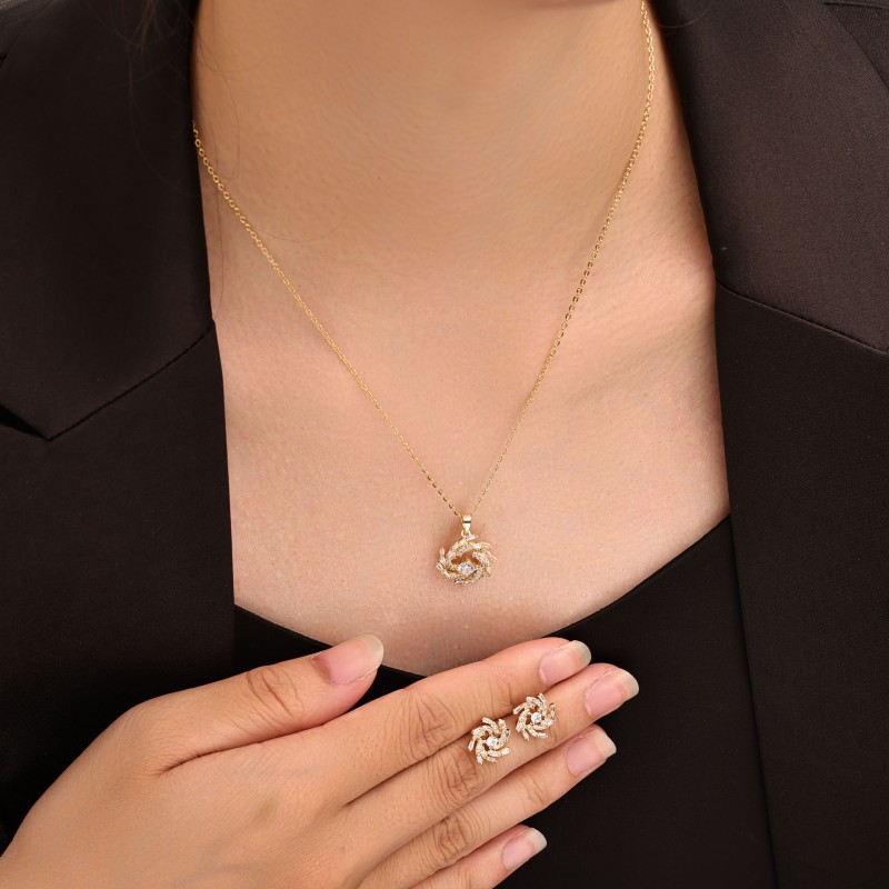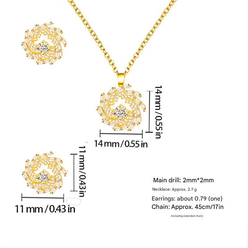 laiton parure de bijoux, Boucle d’oreille stud & collier, Placage, 2 pièces & pavé de micro zircon & pour femme, Or, Vendu par fixé