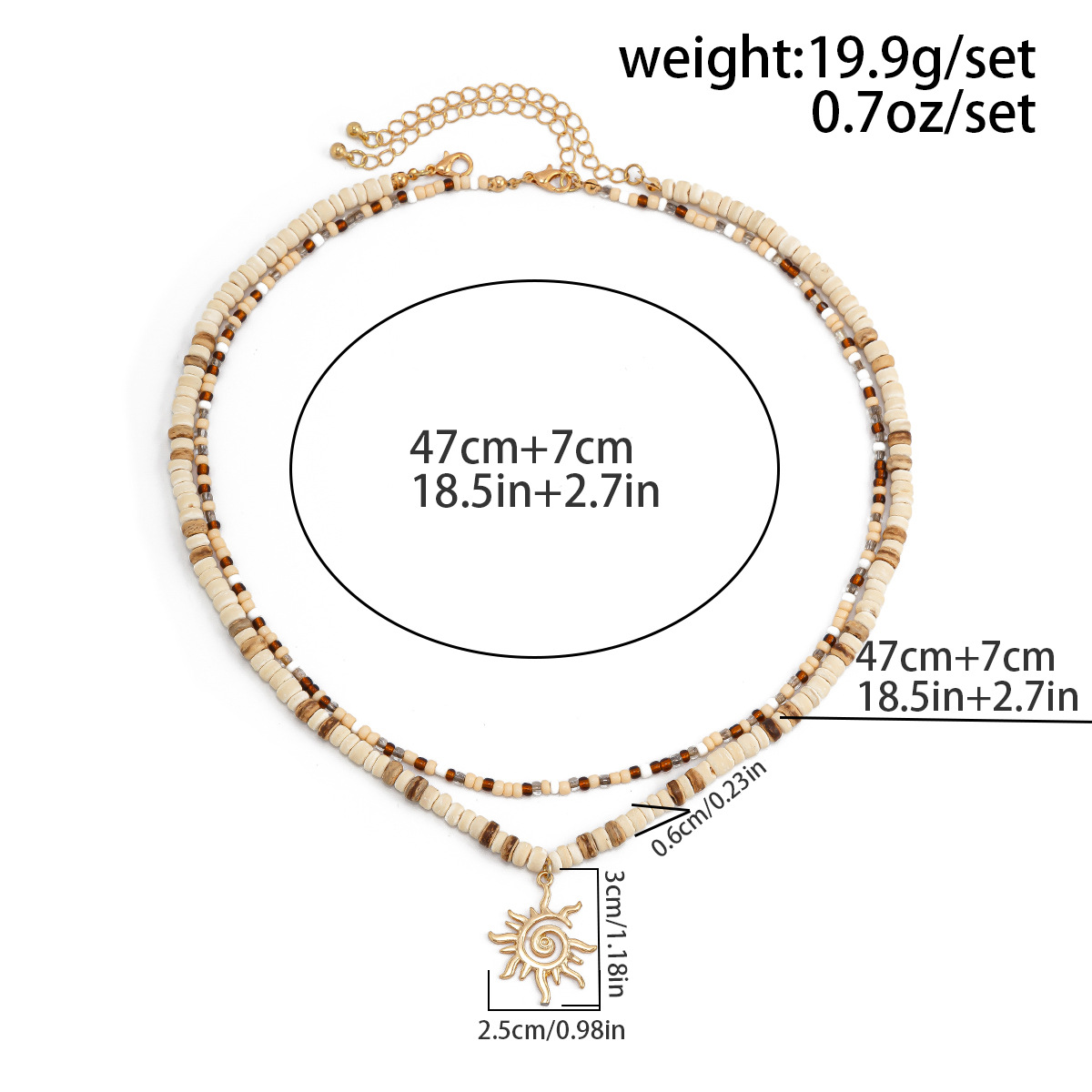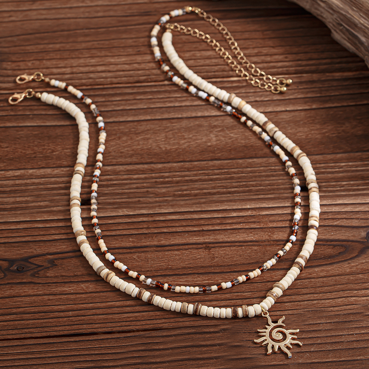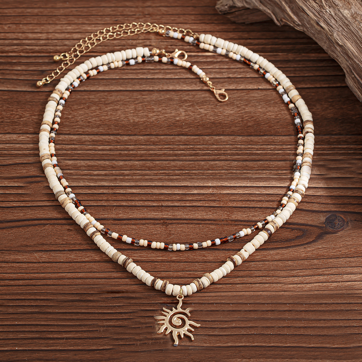 noix de coco collier, avec Seedbead & bois & alliage de zinc, soleil, fait à la main, Double couche & pour homme, Vendu par PC