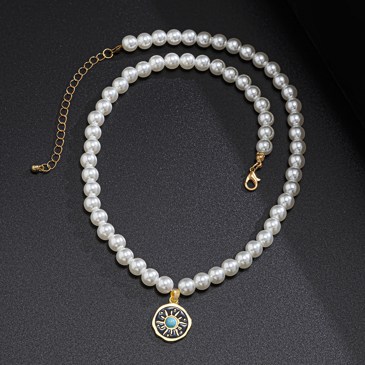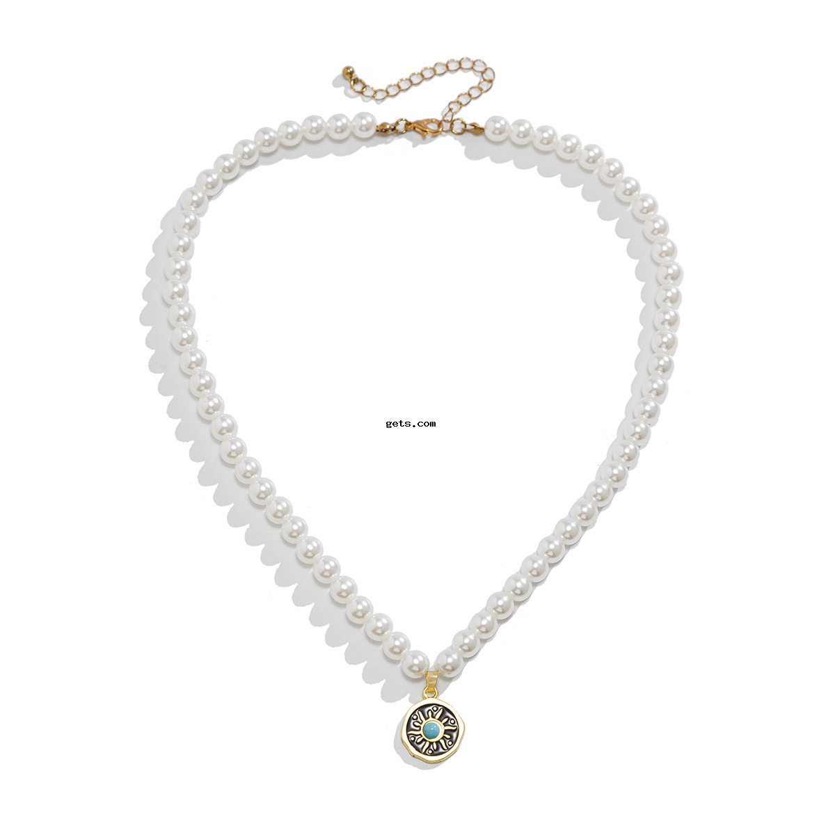 perle de plastique collier, avec alliage de zinc, avec 2.7inch chaînes de rallonge, Plat rond, Placage de couleur d'or, pour homme & émail, Longueur:Environ 18.5 pouce, Vendu par PC