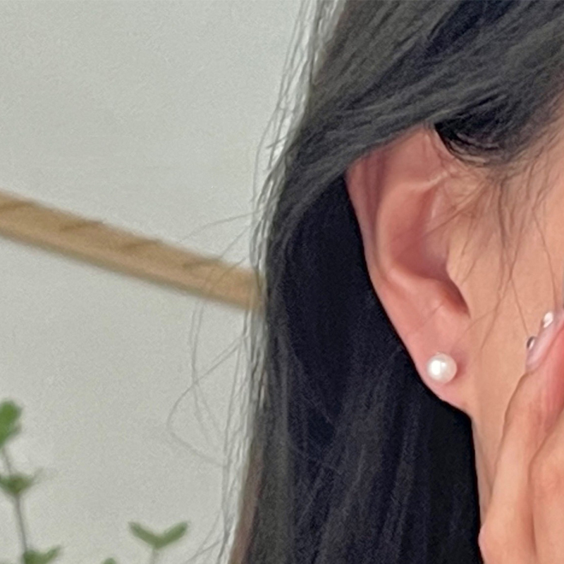 perle d'eau douce cultivée boucle d oreille dormeuse, avec argent sterling 925, Rond, bijoux de mode & pour femme, 6mm, Vendu par paire