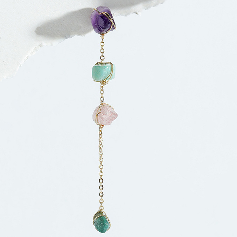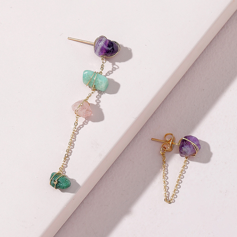 pierre gemme Boucles d'oreilles asymétriques, avec laiton, Placage de couleur d'or, bijoux de mode & pour femme, plus de couleurs à choisir, earring size 20-60mm, Vendu par paire