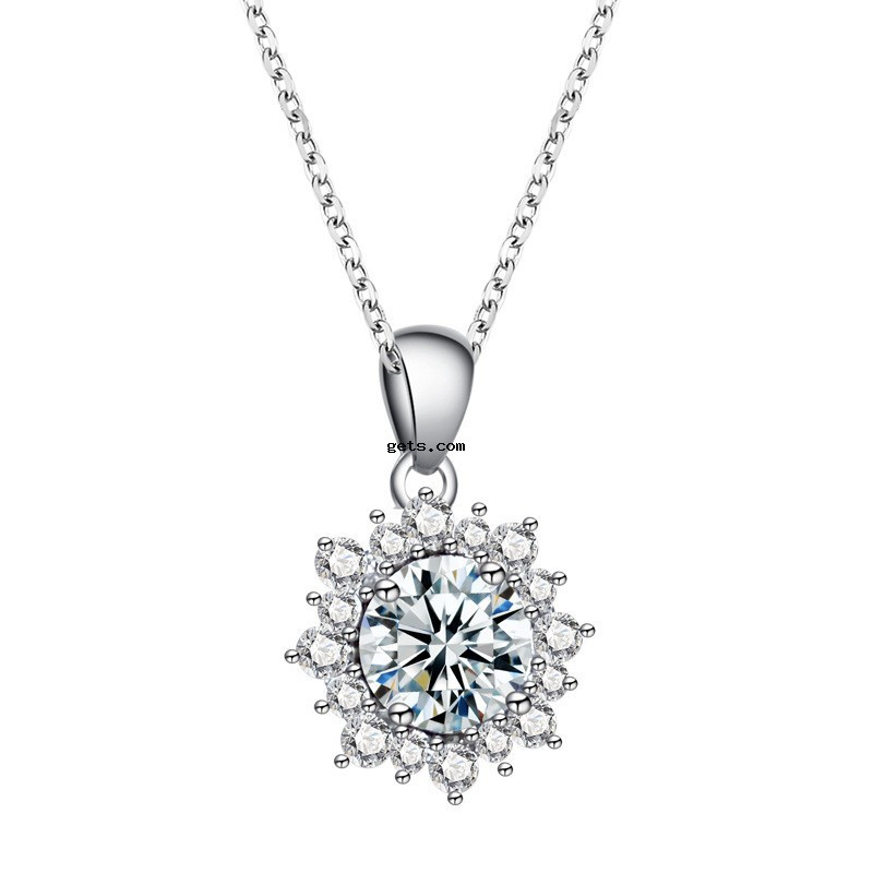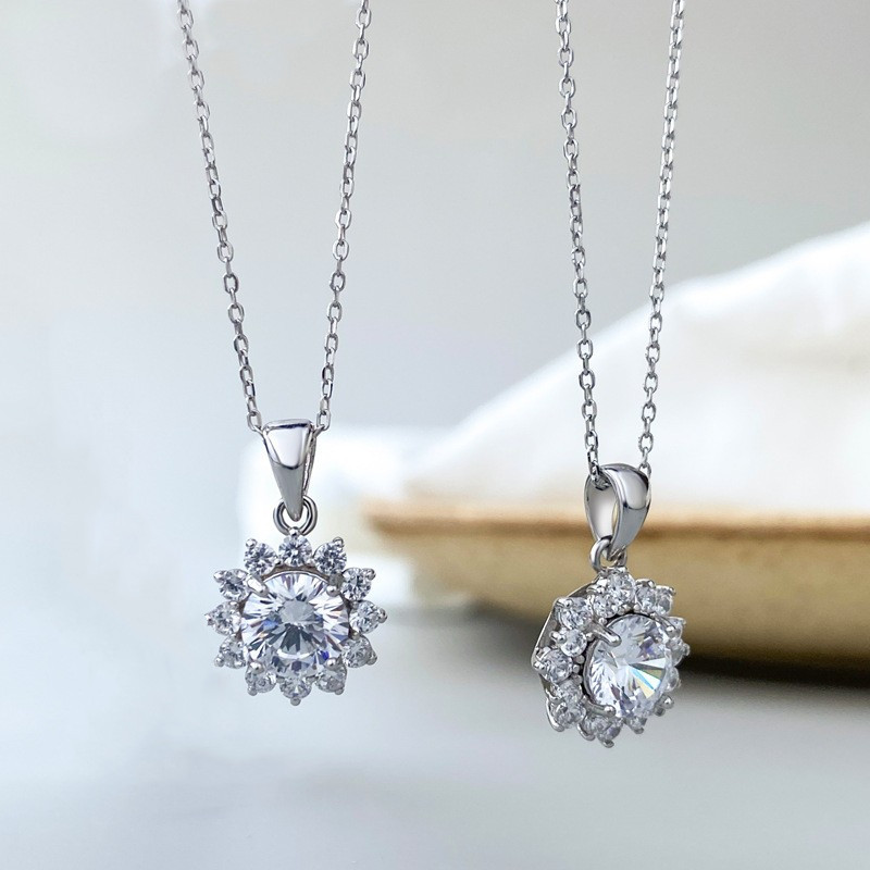 925 Sterling Silver Necklace, with Moissanite, with 2inch extender chain, Flower, platinum plated, oval chain & different styles for choice & micro pave cubic zirconia & for woman, Length:Approx 15.7 Inch, Sold By PC