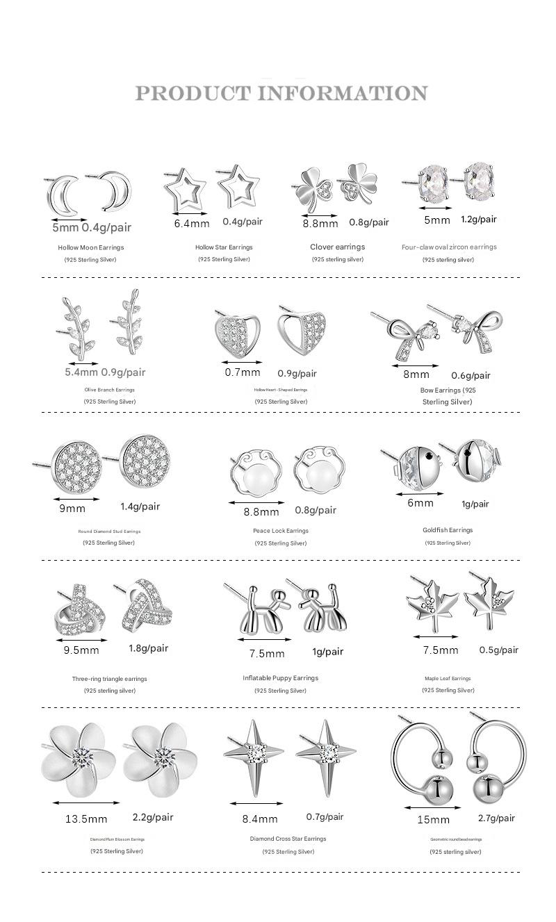 Home > 925 Sterling Silver Jewelry & Fashion Earrings > Sterling Silver Earrings > 925 Sterling Silver Stud Earrings