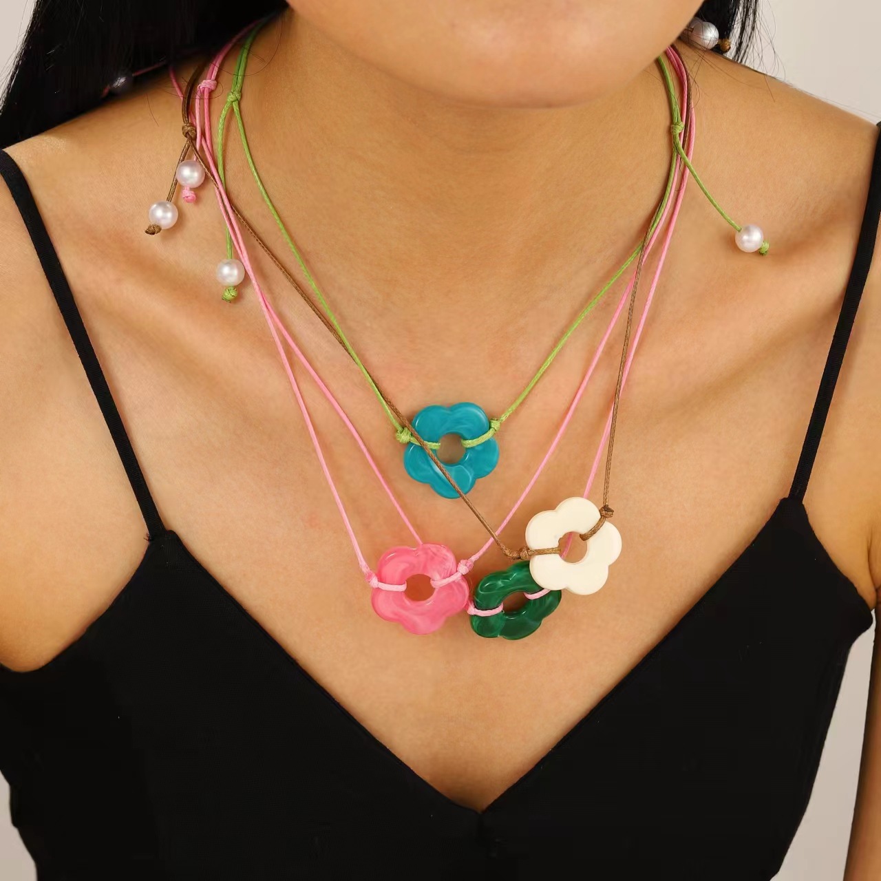 - Acrylic Jewelry Set, Stud Earring & necklace, with Wax Cord