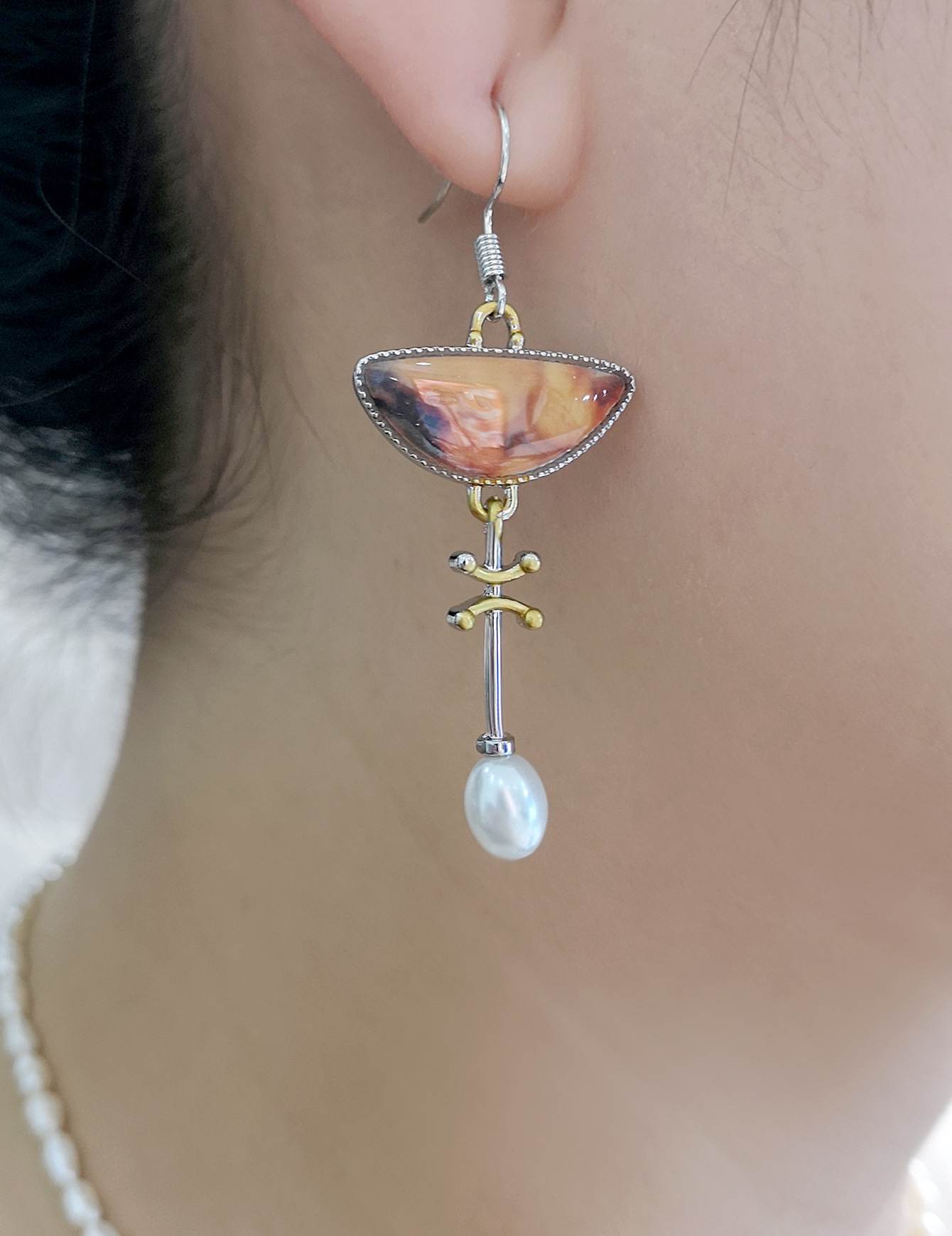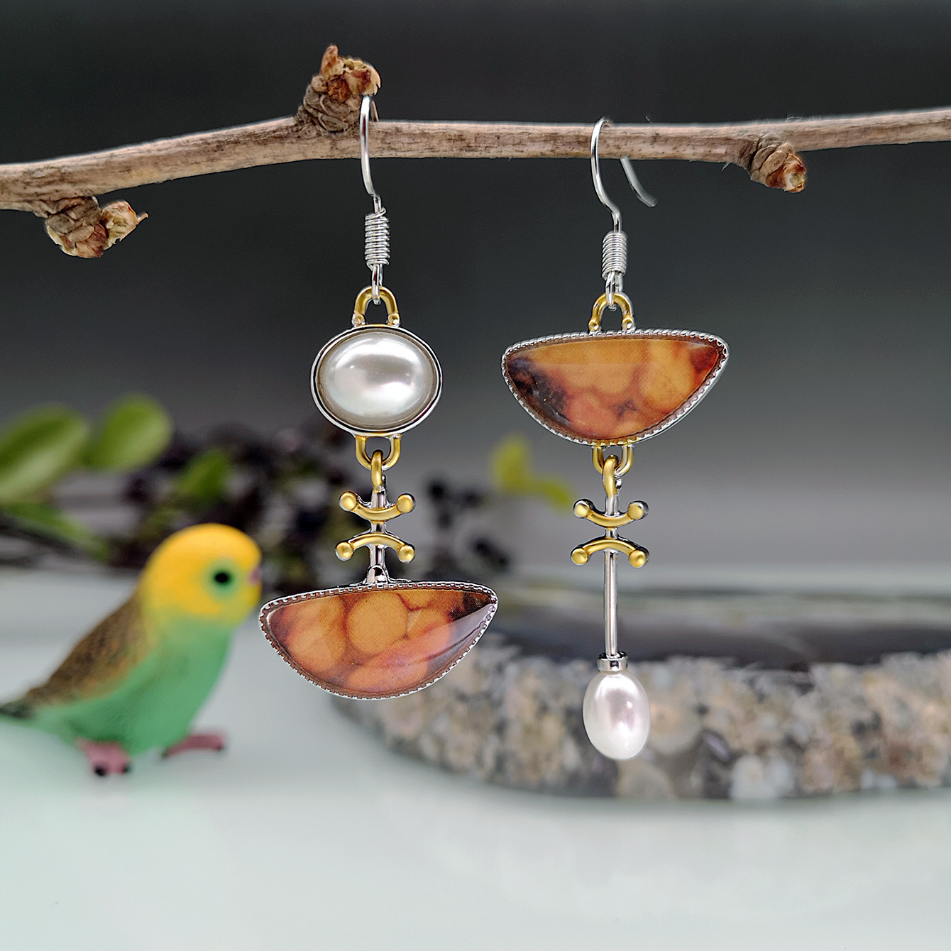 - Asymmetric Earrings, Resin, with Tibetan Style