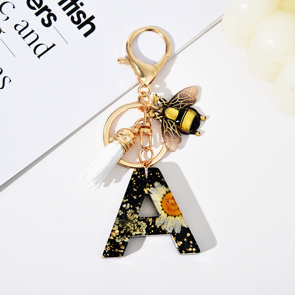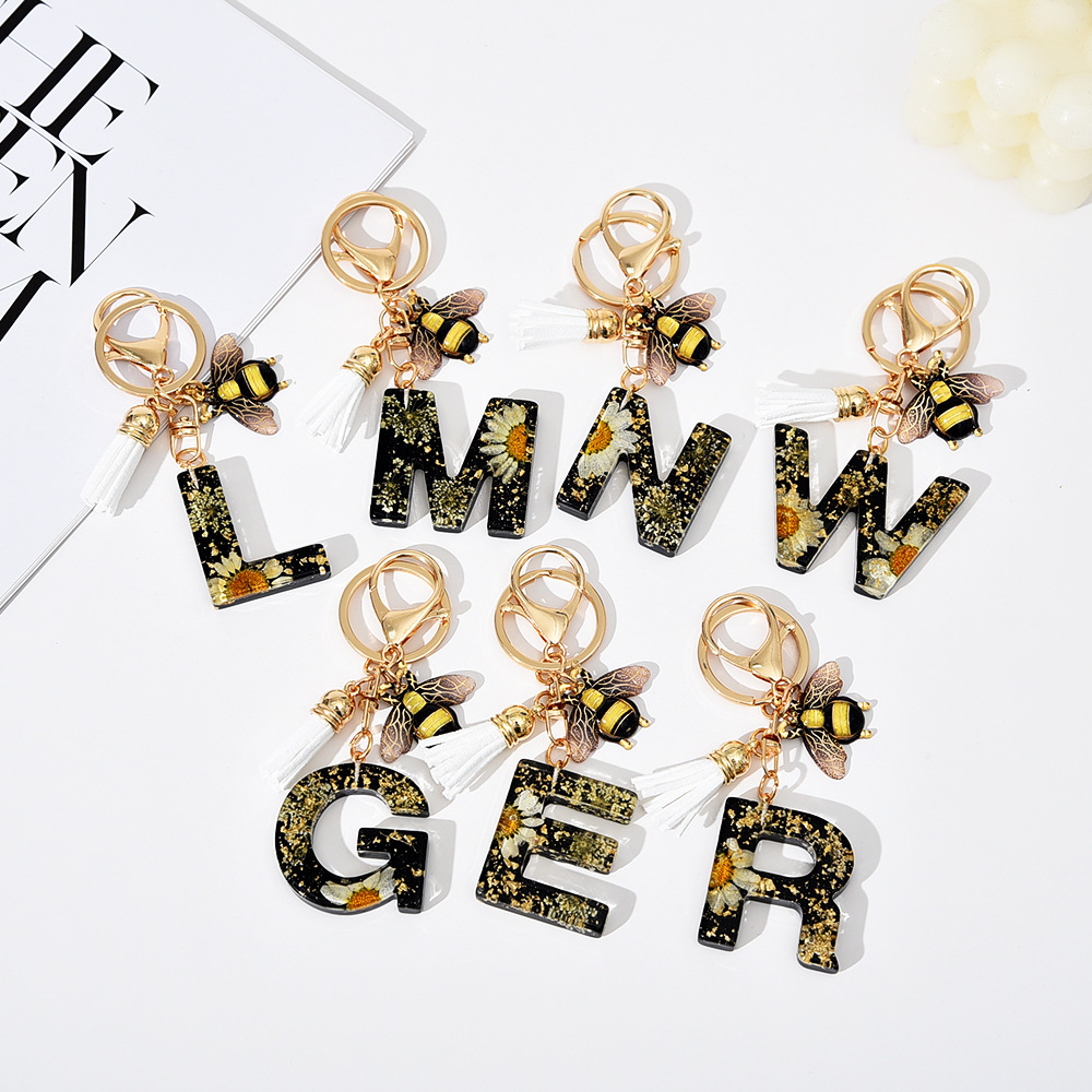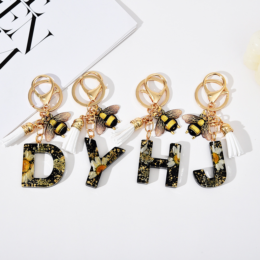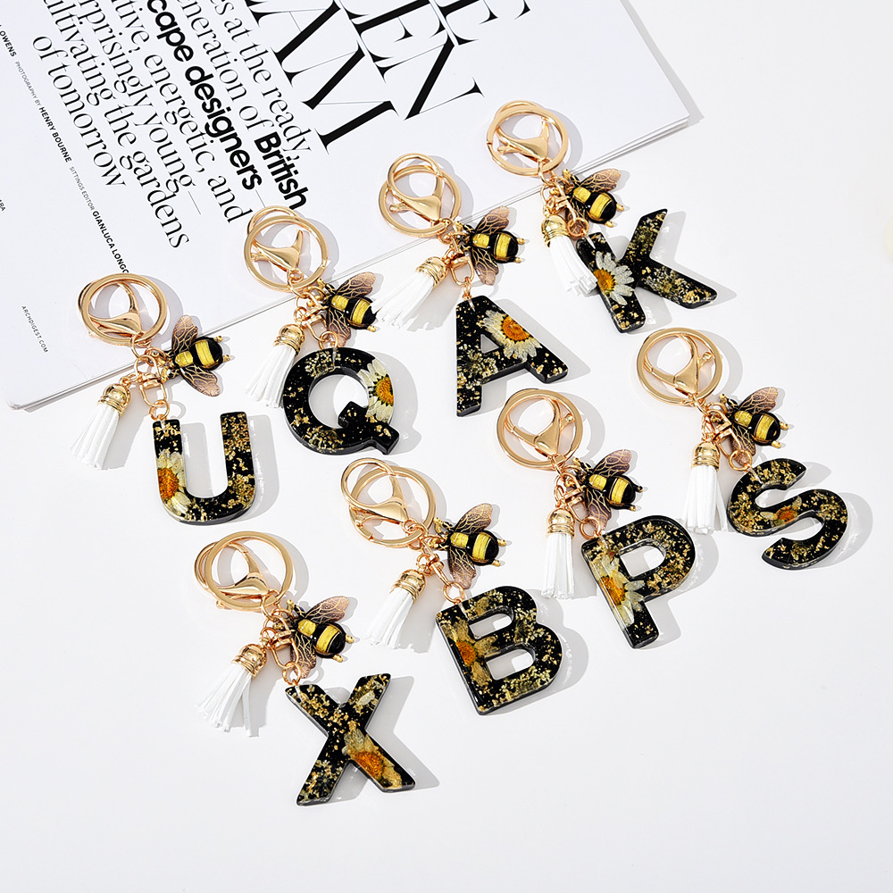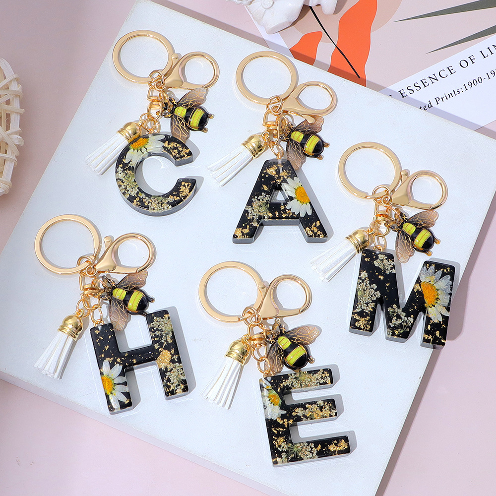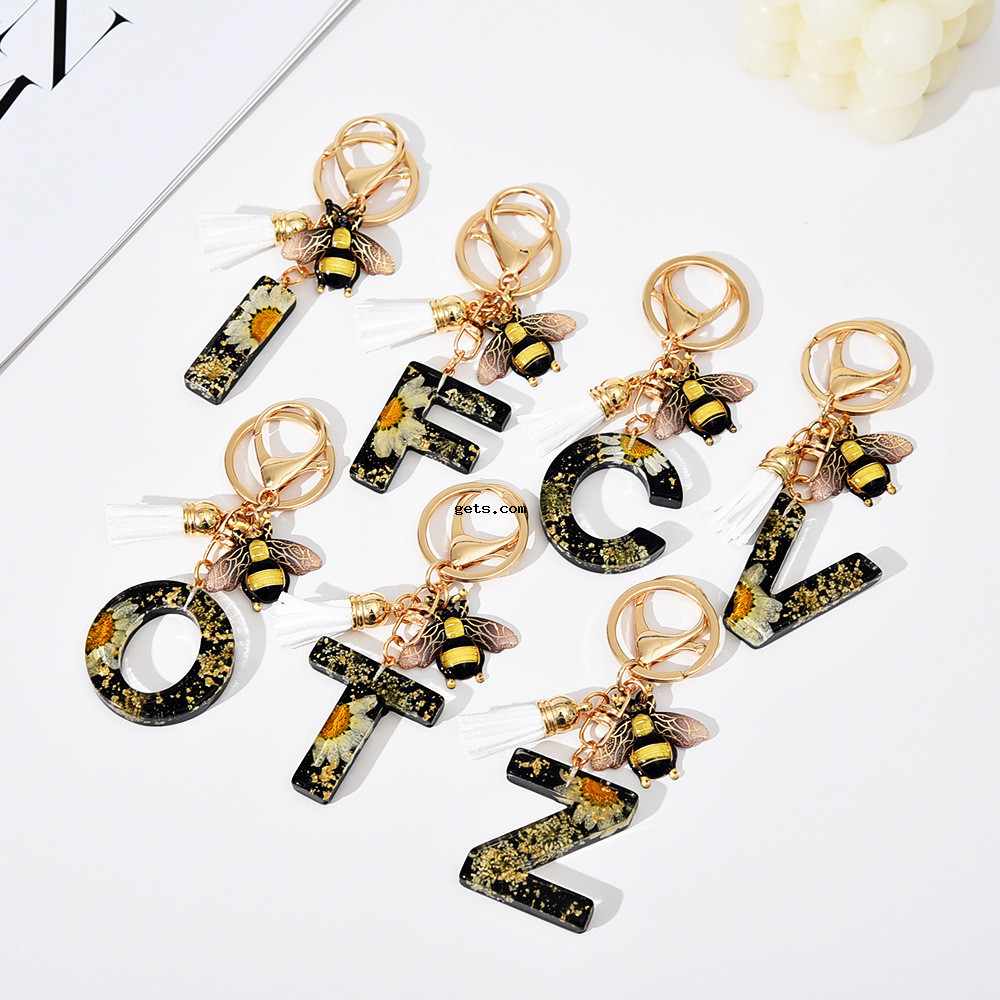 Bag Purse Charms Keyrings Keychains, Resin, with Dried Flower & PU Leather & Tibetan Style, Alphabet Letter, epoxy gel, Unisex & different styles for choice, 100mm, Sold By PC