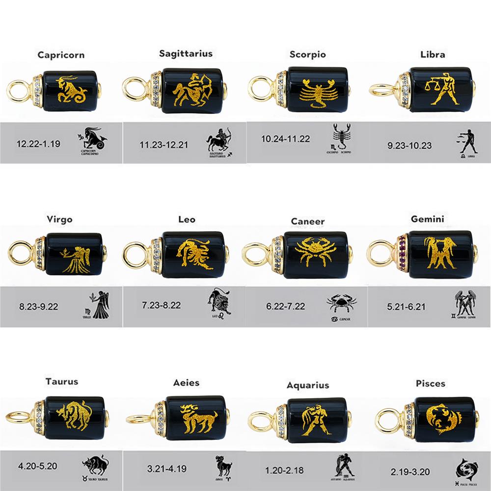 Black Agate Pendants, with Tibetan Style, 12 Signs of the Zodiac, plated, DIY & with rhinestone, more colors for choice, 24x10mm, Sold By PC