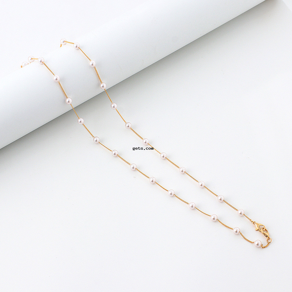 Brass Mask Chain Holder, with Plastic Pearl, gold color plated, Unisex & different styles for choice, Sold By PC